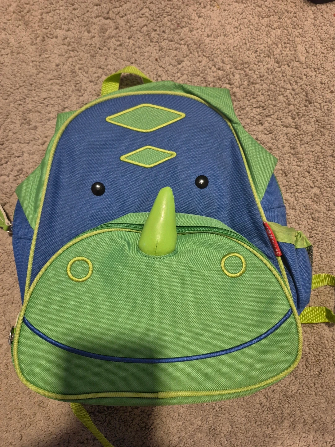 Here's a cute Skip Hop Zoo dinosaur backpack! It's in great condition and perfect for your little one. The backpack features a fun dinosaur design with vibrant blue and green colours. It's the perfect size for toddlers and preschoolers to carry their essentials.