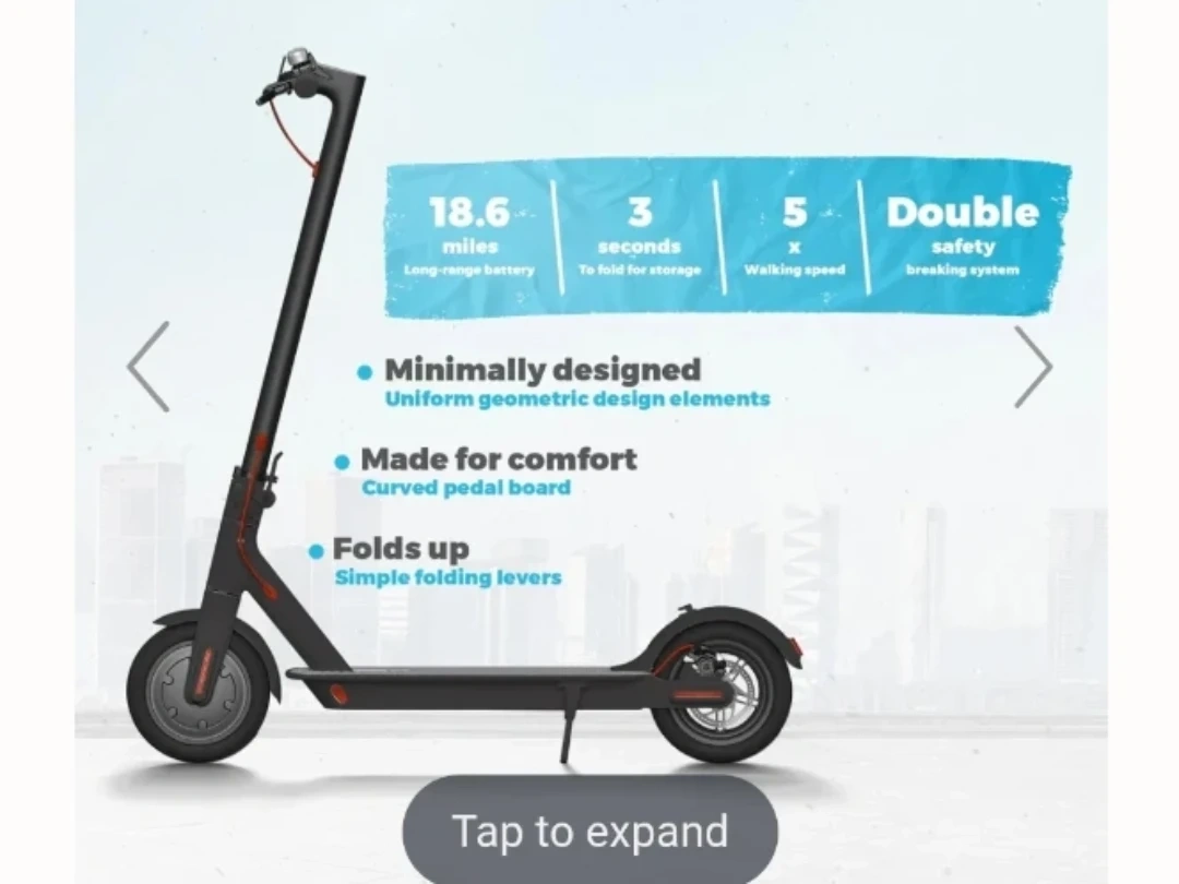 Selling a Techshark Folding Electric Scooter! It can reach speeds of 25km/h. It folds in 3 easy steps and is great for compact storage at home, the office, or in the trunk of your car! It also features anti-slip handles, controlled acceleration, battery life at a glance, and single button controls. It weighs just 26.9 lbs and has a lightweight aluminum frame