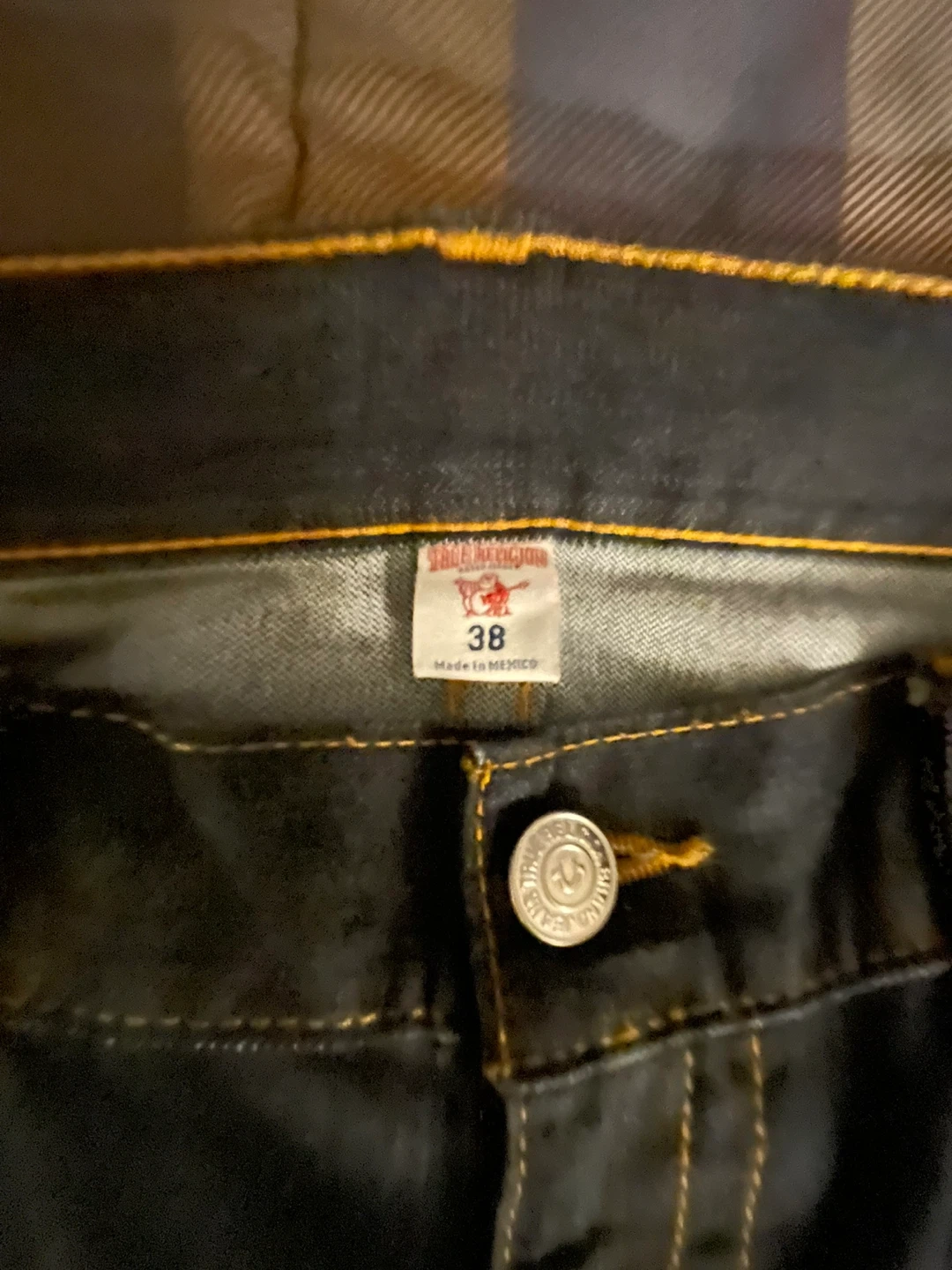 True Religion jeans in size 38! The material is 100% cotton. Made in mx. I want it off my hands as I barely wear this brand anymore