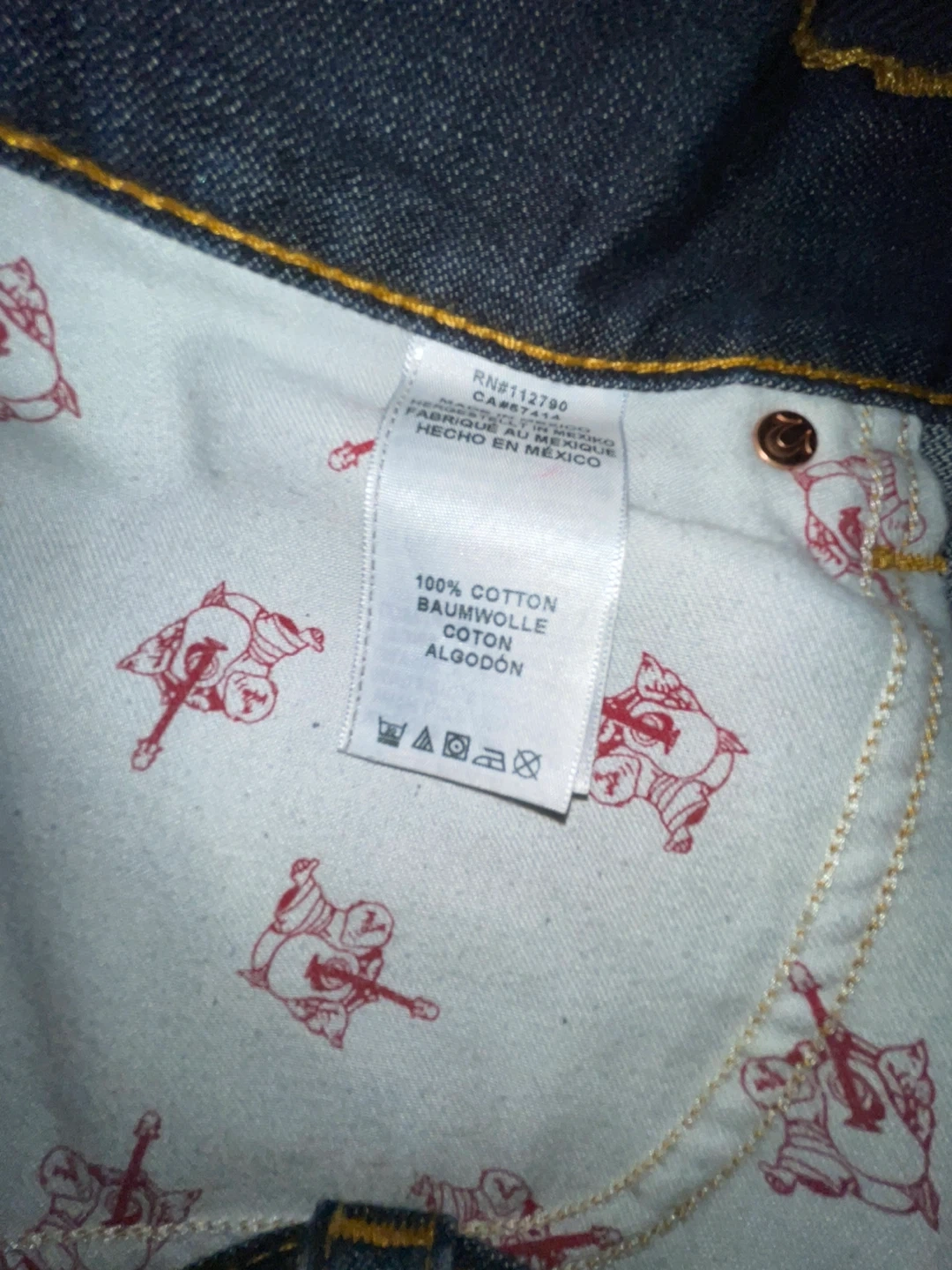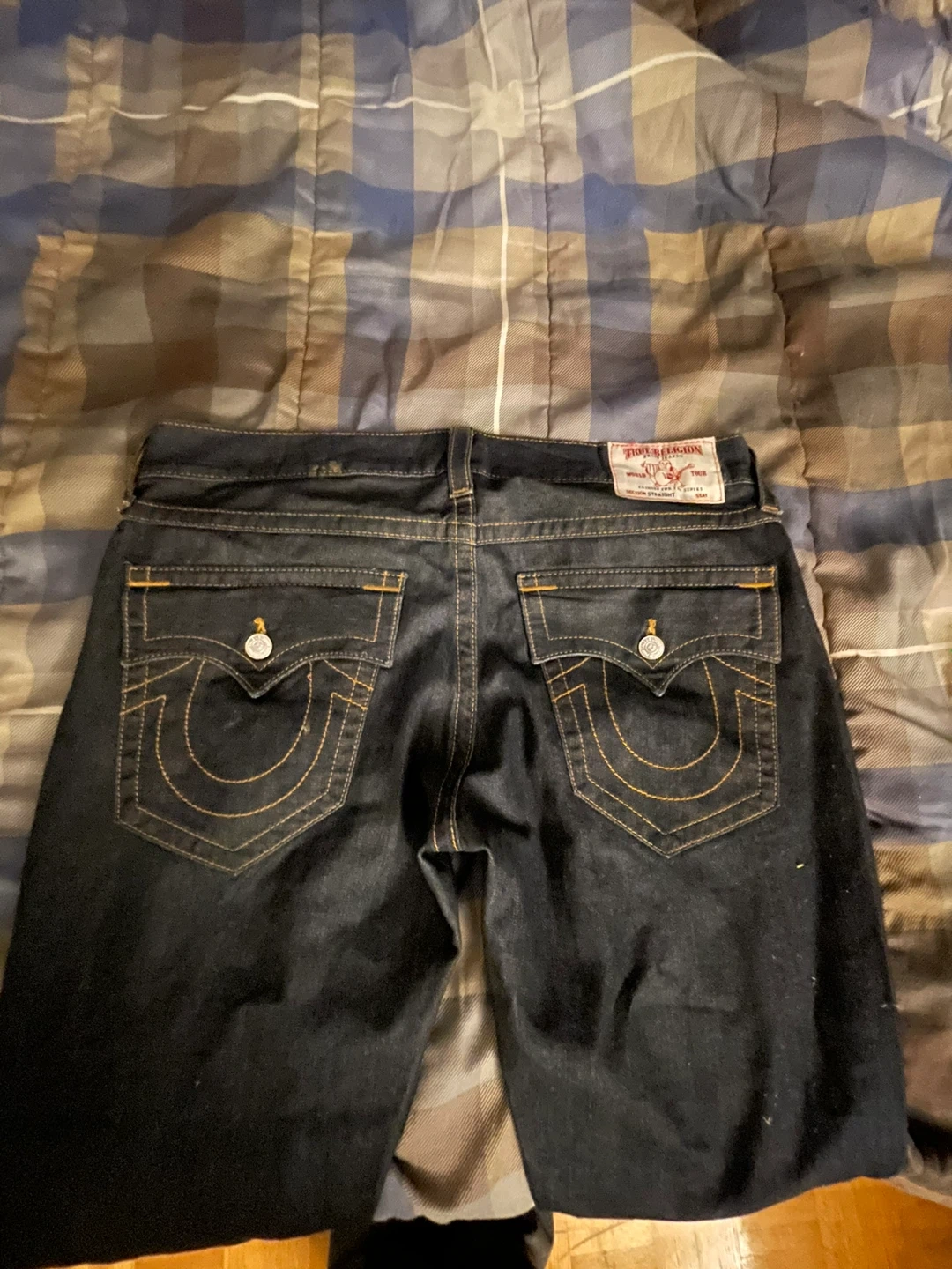 True Religion jeans in size 38! The material is 100% cotton. Made in mx. I want it off my hands as I barely wear this brand anymore