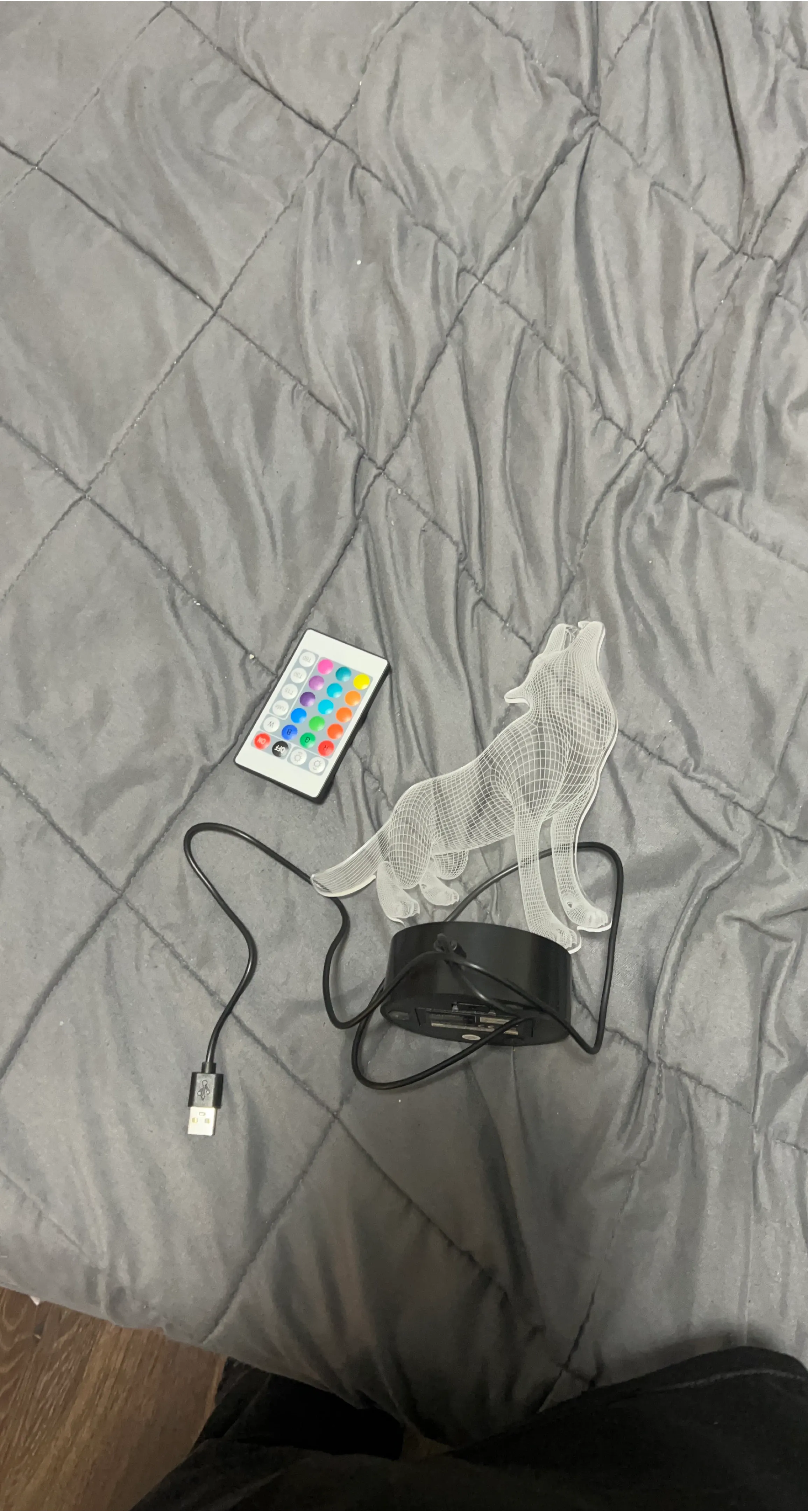 Check out this cool wolf 3D illusion LED desk lamp! It comes with a remote so you can change the colours. It's in great shape and ready to light up your space