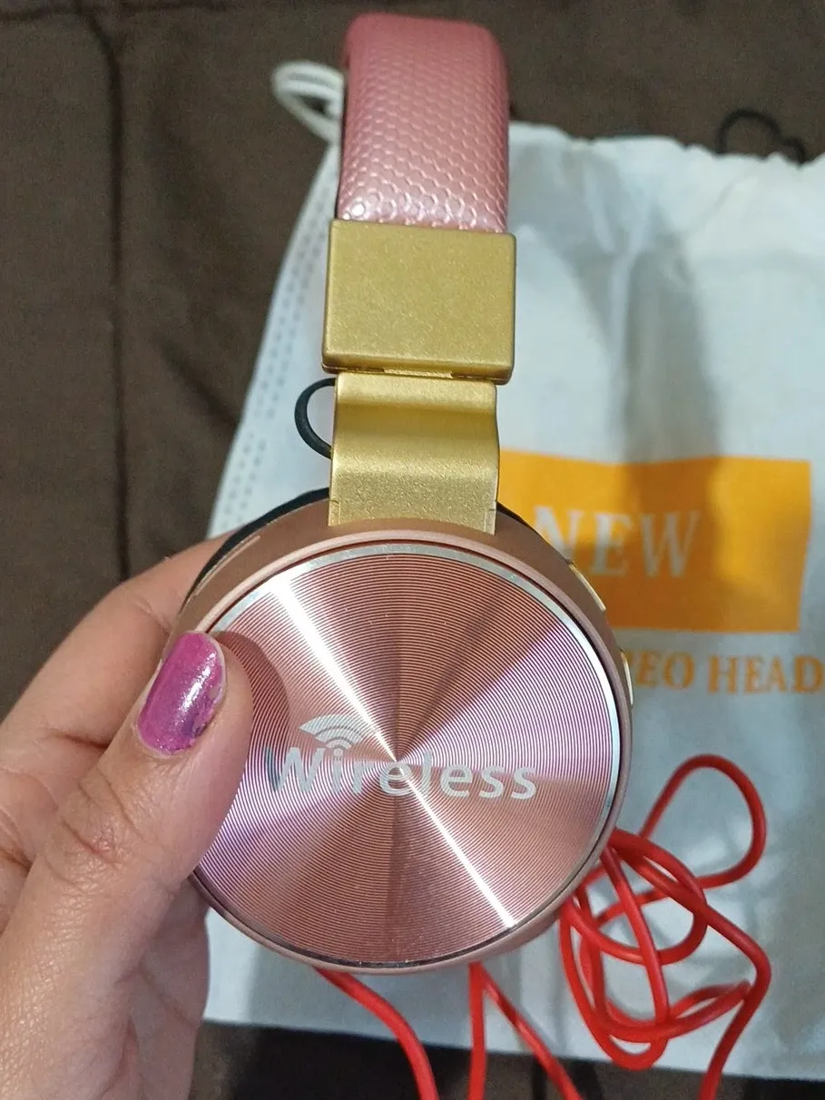 Selling a pair of rose gold wireless stereo headphones! They come with a red wire. Perfect for listening to your favourite tunes on the go.