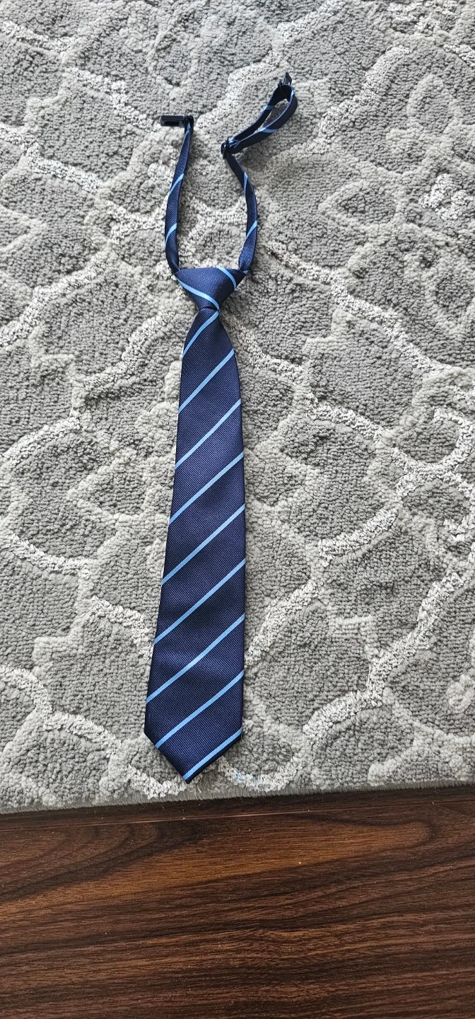 Giving away a bundle of swim trunks and a tie. The swim trunks are black and orange and the tie is blue with light blue stripes. Great for swimming or a special occasion for 6-8 years boy
