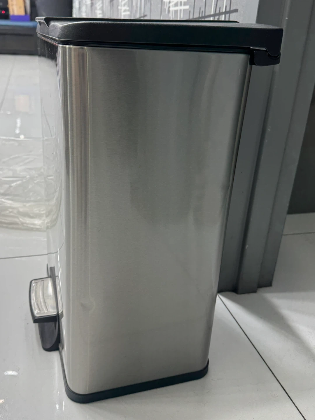 Selling a stainless steel step trash can. It's in good condition and ready for a new home! The step mechanism works smoothly. Perfect for any kitchen or bathroom