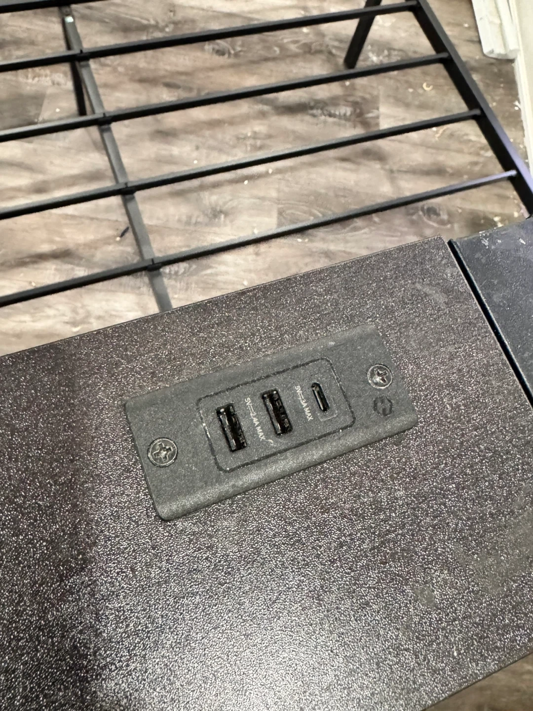 It also includes convenient built-in USB charging ports. It also has LED lights on the headboard.