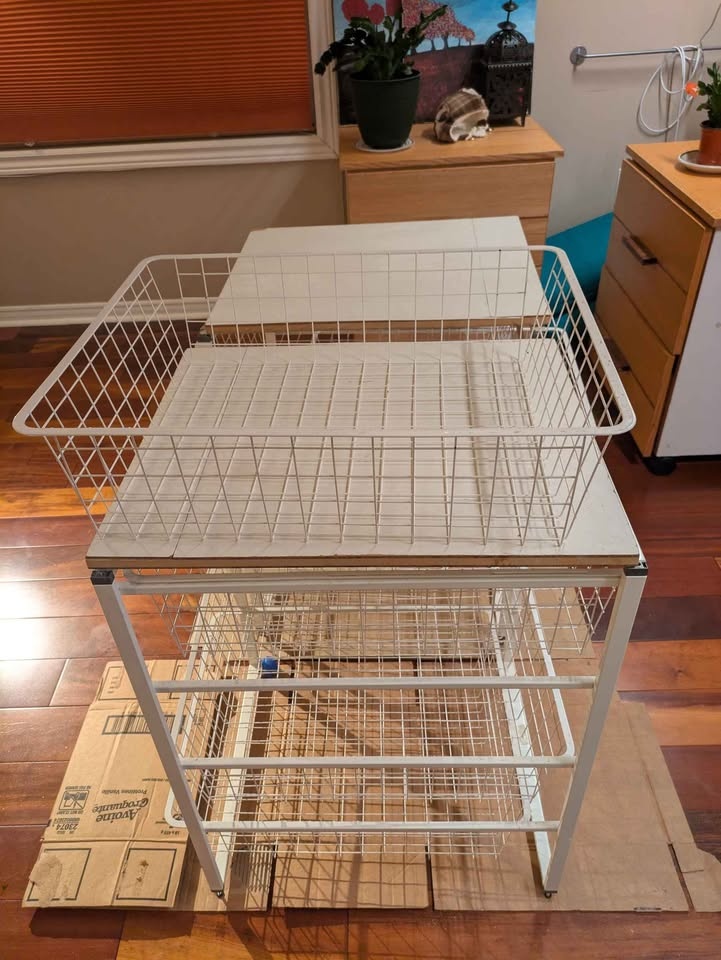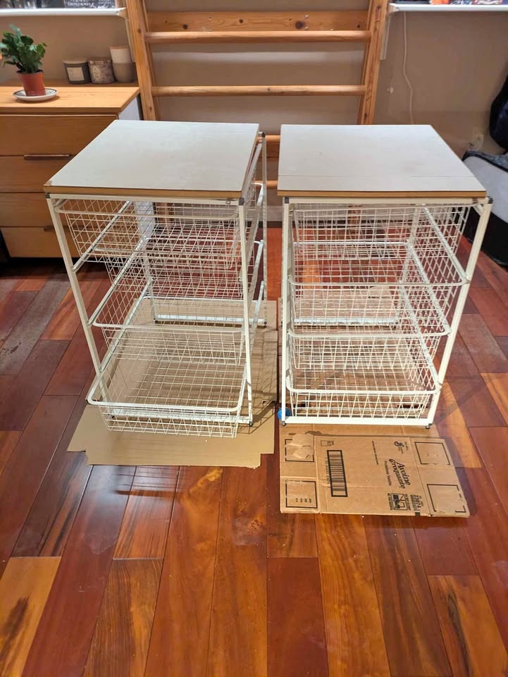 Two wire basket drawer sets for sale. Four drawers in each set. Both sets are from Ikea. We added the plywood top, you are welcome to take it if you want.