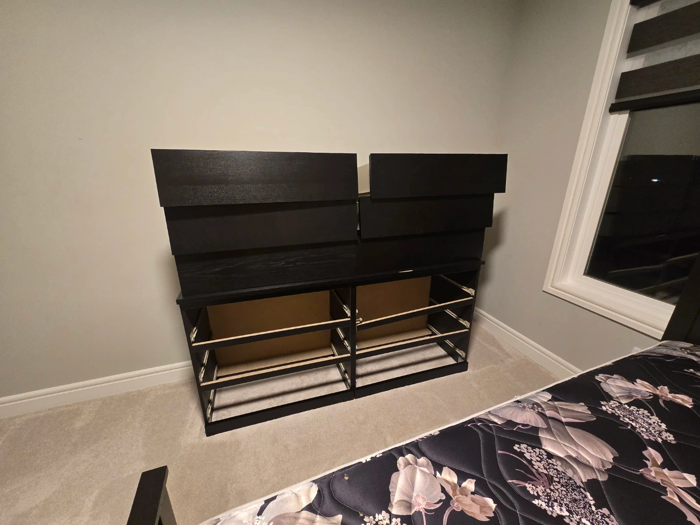 Selling an IKEA Hemnes dresser in black-brown. It's partially disassembled, but all the pieces and hardware are included. Ready for easy transport and assembly!