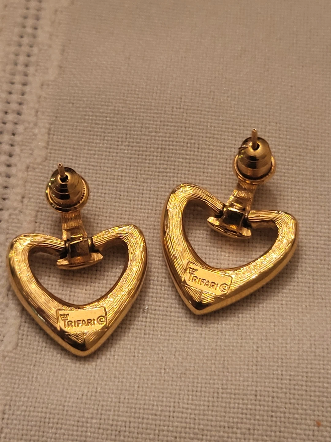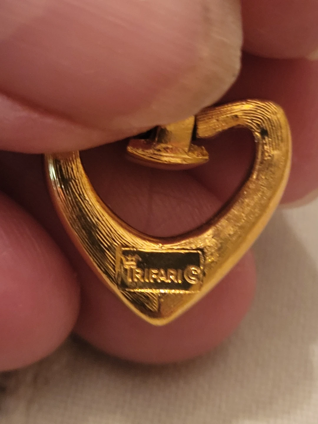 Buy & SellTrifari Gold Heart EarringsTrifari Gold Heart Earrings$20Selling a pair of Trifari gold-tone heart earrings. They are in good condition and have the Trifari logo on the backConditionLike newWHERE TO MEETCheck LocationView MapSELLERverifiedTammyWorthington16612 reviews0 chats·0 favorites·3 viewsSEND CHAT TO SELLERHi Tammy! I’m interested in your listing.Hi Tammy! I’m interested in your listing.Get the Karrot app to chatSign In to chat
