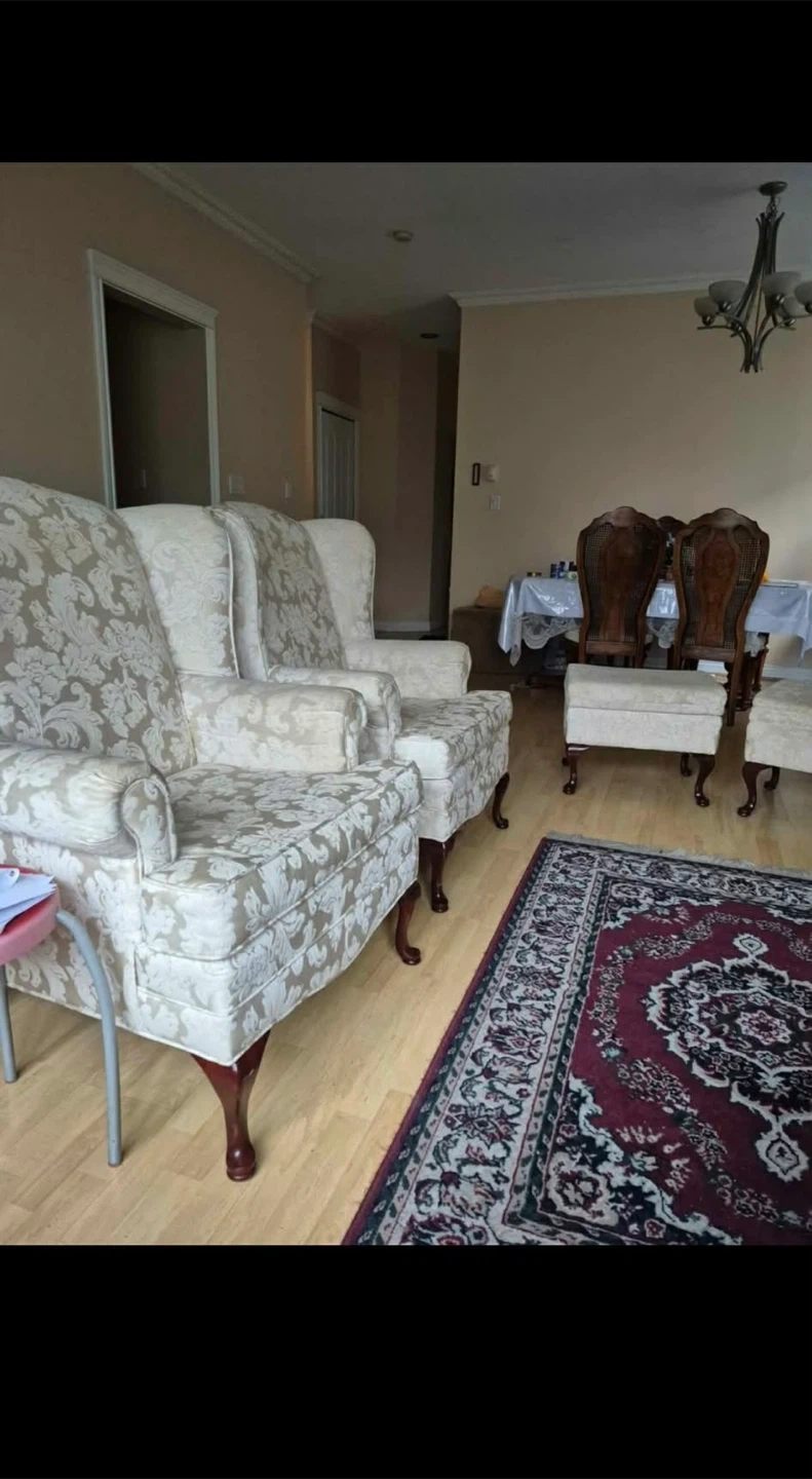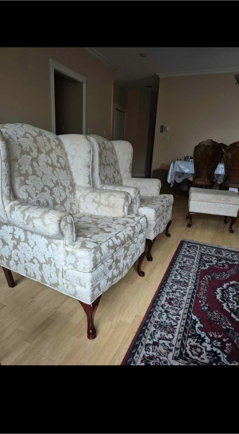 Selling a set of armchairs and ottomans with a lovely floral pattern. They're in good condition and would add a touch of elegance to any living room. Perfect for creating a cozy and inviting space!