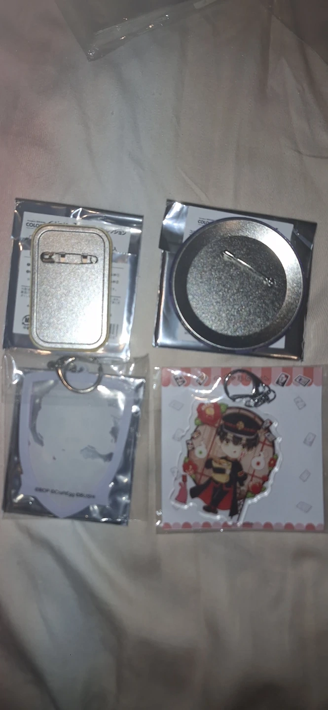 Selling a set of anime character keychains and pins. They're all in new condition and official, some are still in their original packaging!