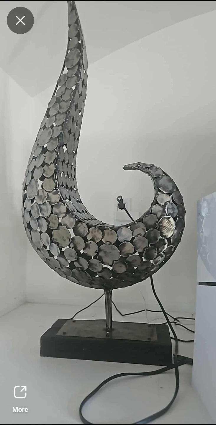 A pair of unique metal decorative sculptures! They are in great condition and would make a striking addition to any room. The design features a teardrop shape with a base and is to mimic the flight of a bird.
