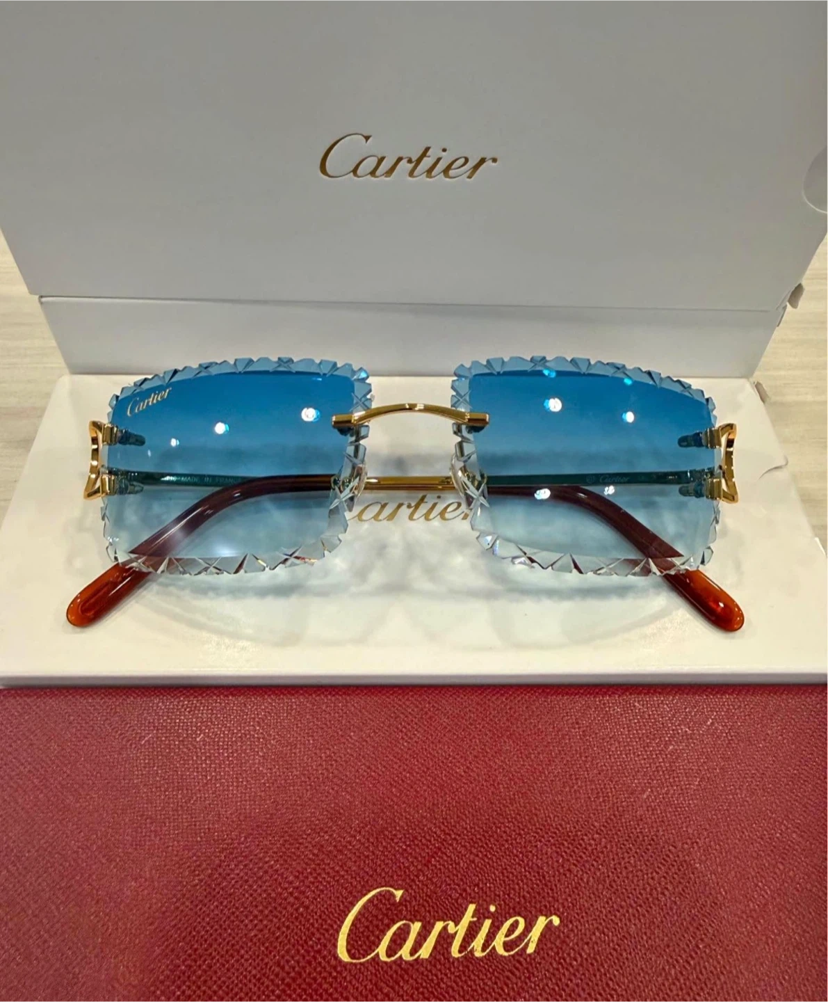 Buy & SellCartier Rimless Sunglasses Blue LensCartier Rimless Sunglasses Blue Lens$770Selling a pair of Cartier sunglasses with blue lenses! They come with the original box.ConditionNewWHERE TO MEETCheck LocationView MapSELLERZanaMaple100 reviews0 chats·0 favorites·54 viewsSEND CHAT TO SELLERHi Zana! I’m interested in your listing.Hi Zana! I’m interested in your listing.Get the Karrot app to chatSign In to chat