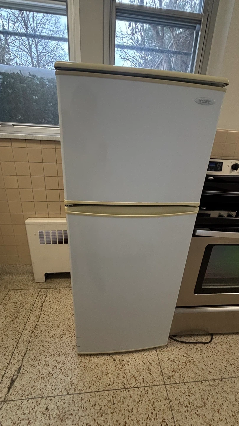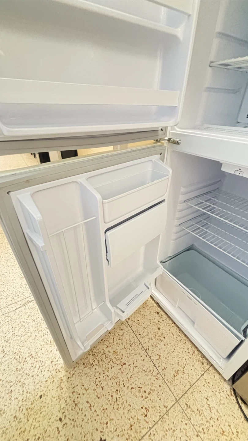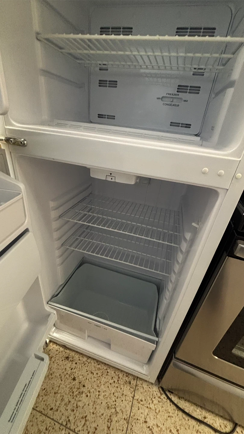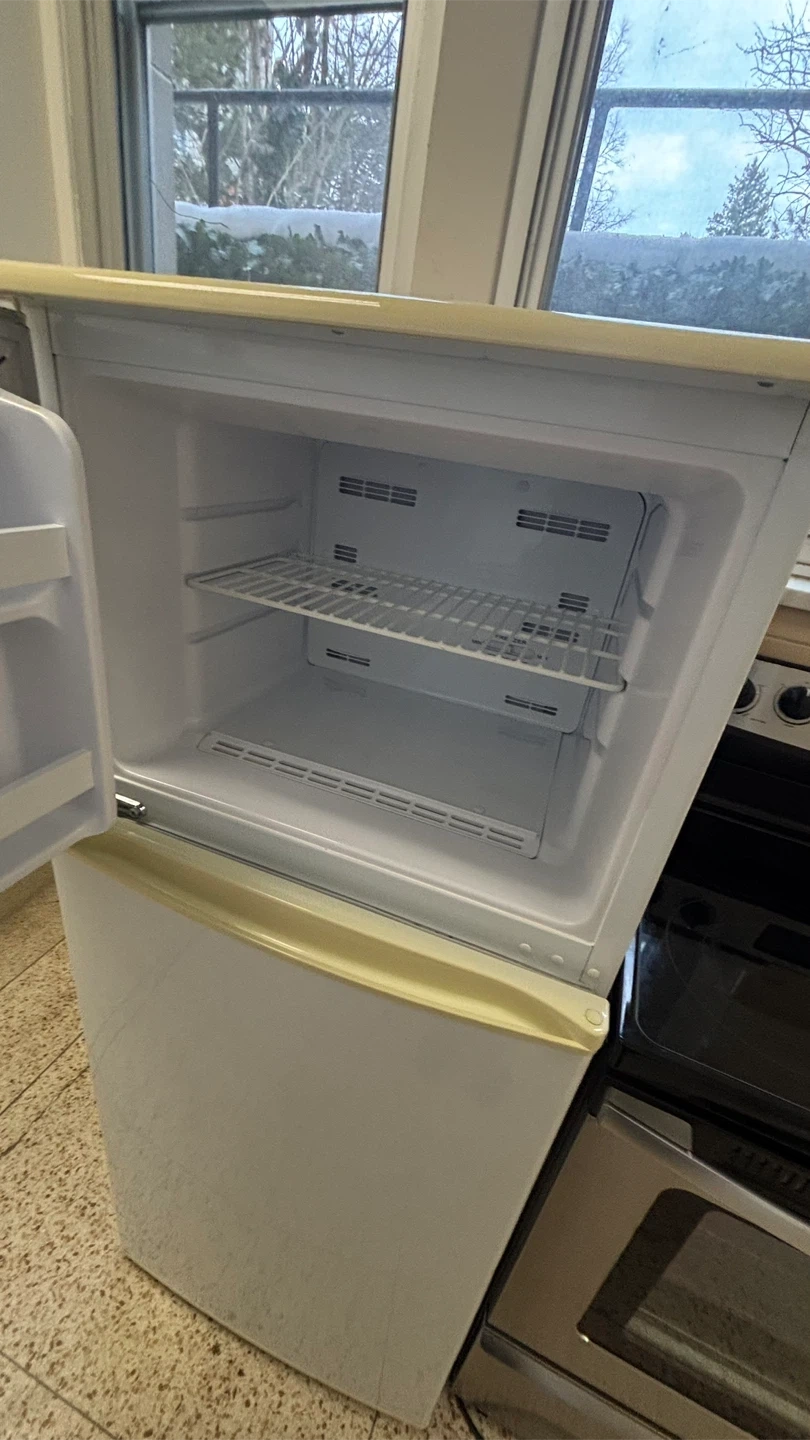Selling a clean, apartment-sized refrigerator. It's in good working condition and ready for a new kitchen! Perfect for smaller spaces or as a secondary fridge. It features adjustable shelves and a freezer compartment.