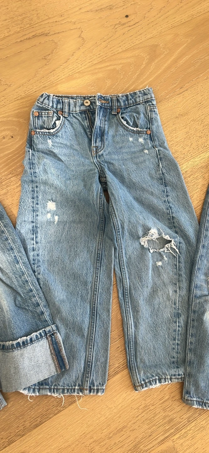 Selling a pair of Zara Kids jeans in a distressed denim style. They're perfect for a trendy look! These jeans have a cool, worn-in vibe with intentional rips and fading. Great for everyday wear! Size 8 and 9