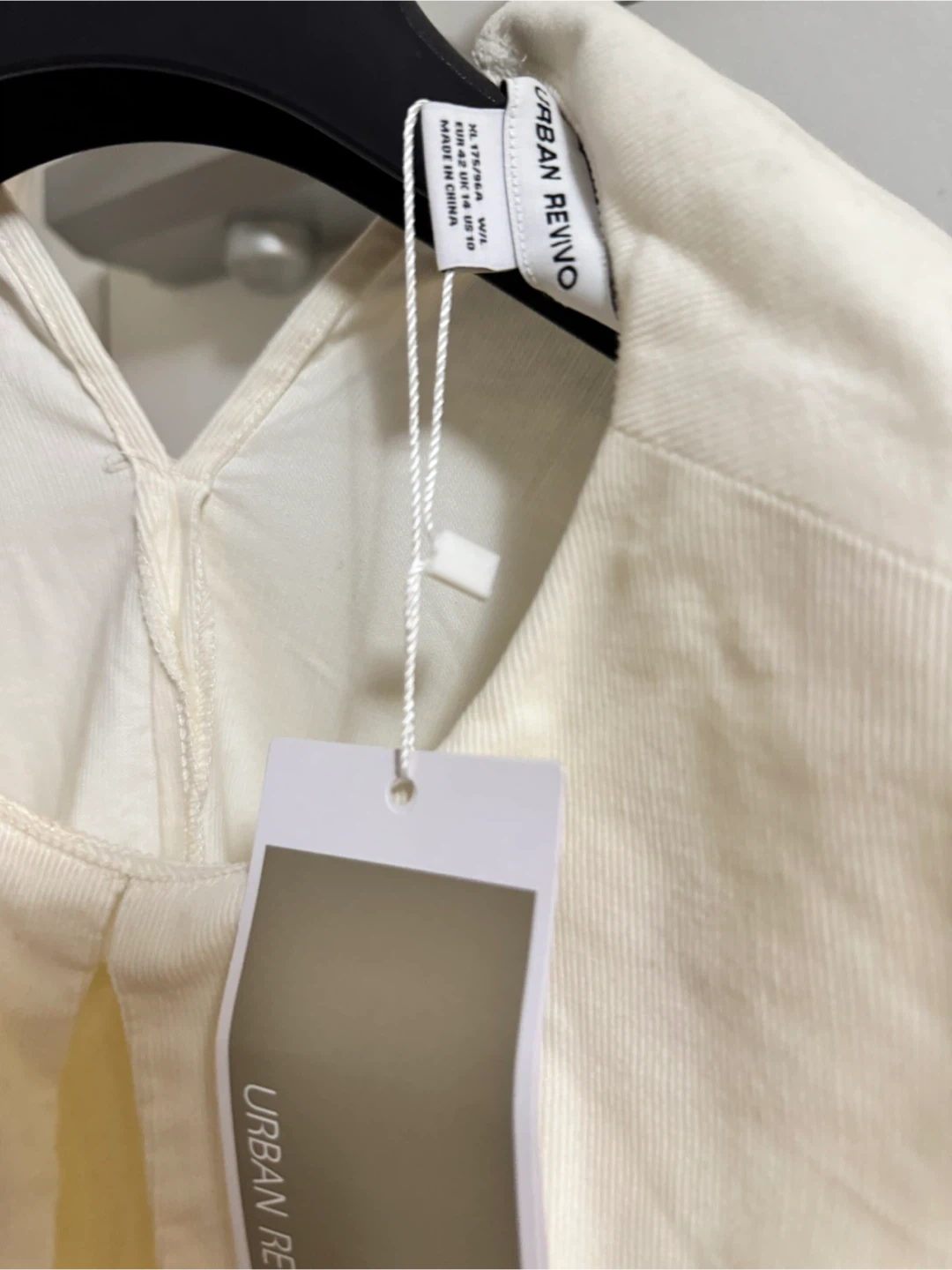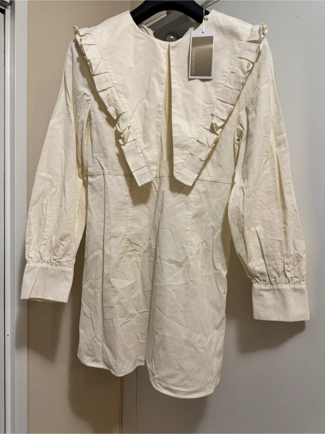 This is a cream-coloured dress from Urban Revivo with a ruffle collar. It's a size W/L. The dress is in great condition and ready for a new wardrobe!