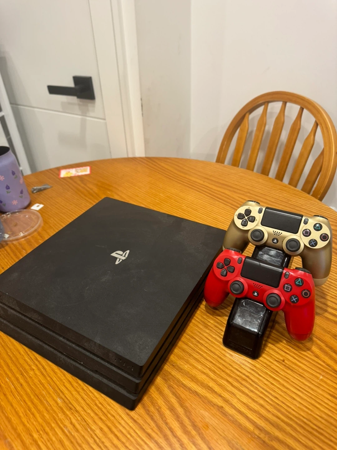 Buy & SellPlayStation 4 Pro with 2 ControllersPlayStation 4 Pro with 2 Controllers$245Selling a PlayStation 4 Pro. It comes with two controllers, one gold and one red. Great for gaming!BrandPlayStationWHERE TO MEETCheck LocationView MapSELLERSammyCliffside100 reviews3 chats·1 favorites·84 viewsSEND CHAT TO SELLERHi Sammy! I’m interested in your listing.Hi Sammy! I’m interested in your listing.Get the Karrot app to chatSign In to chat