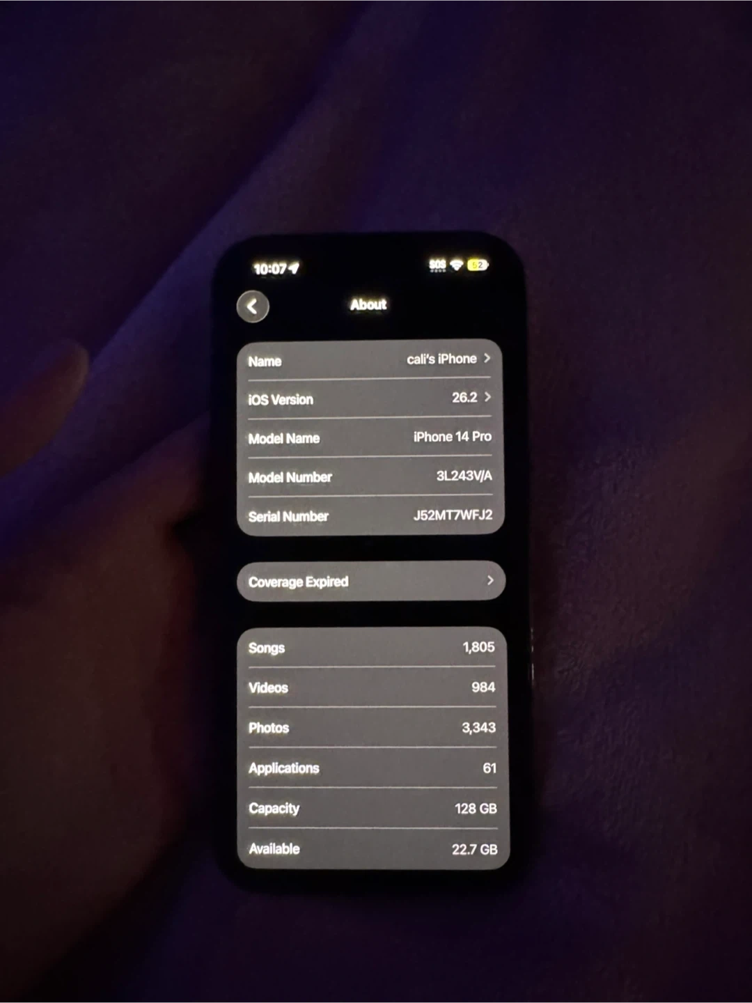 Selling my iPhone 14 Pro with 128GB of storage. The model number is 3L243VJ/A. Battery health is at 83%. It's only been used for 1 year.