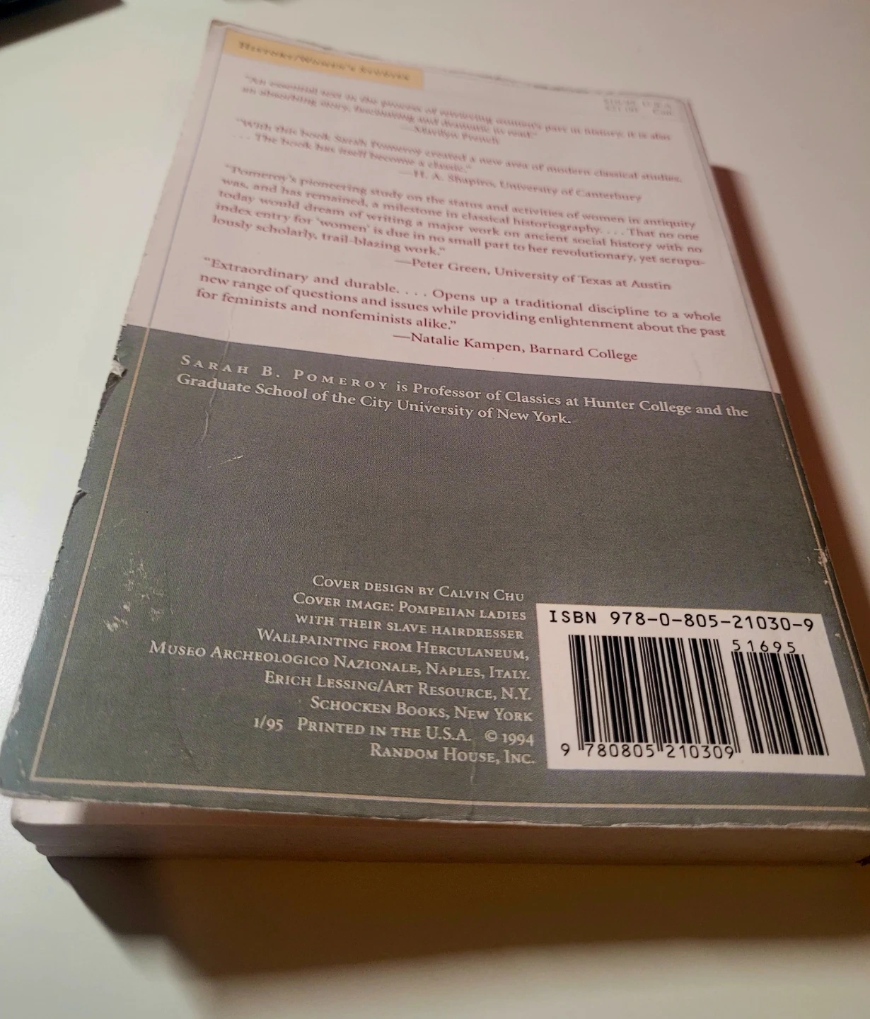 Selling the book "Goddesses, Whores, Wives, and Slaves: Women in Classical Antiquity" by Sarah B. Pomeroy. It's a fascinating read for anyone interested in history and women's studies. The cover design is by Calvin Chu. Light water damage, but it does not affect the words.