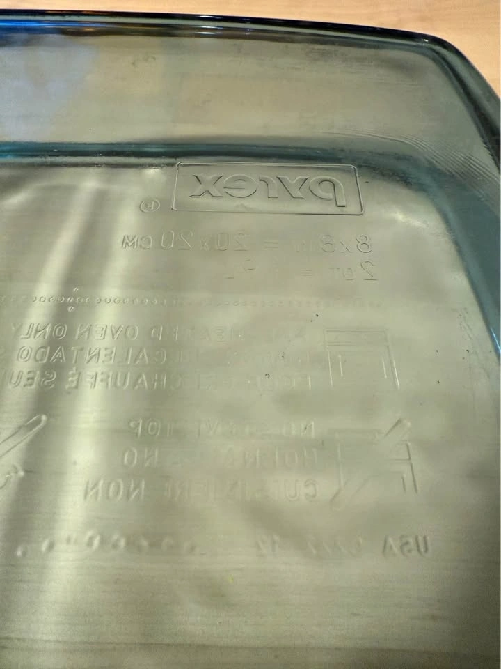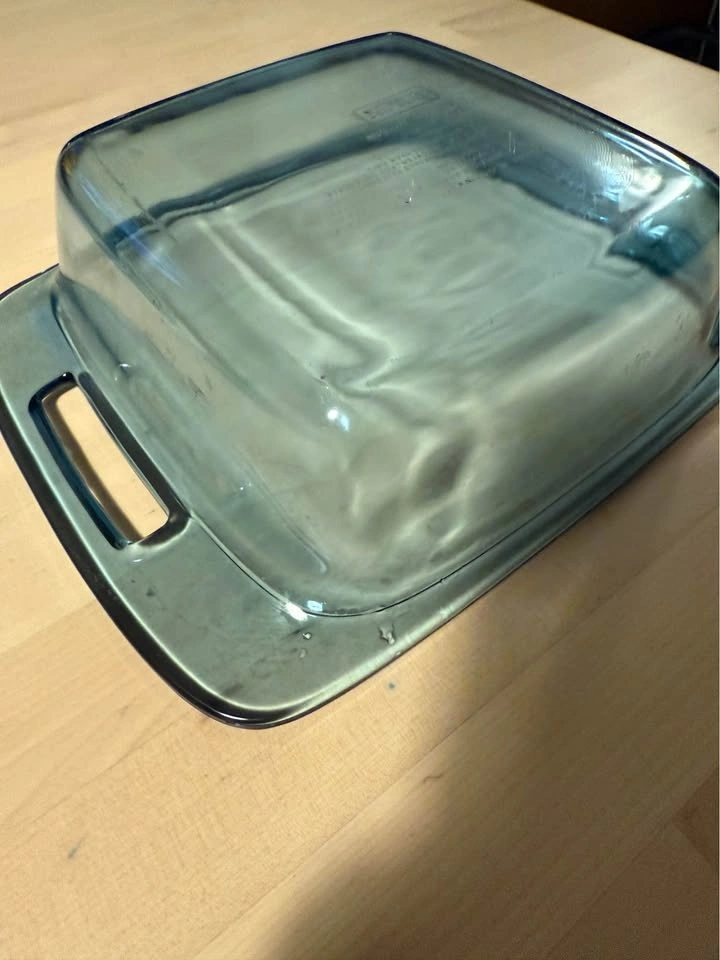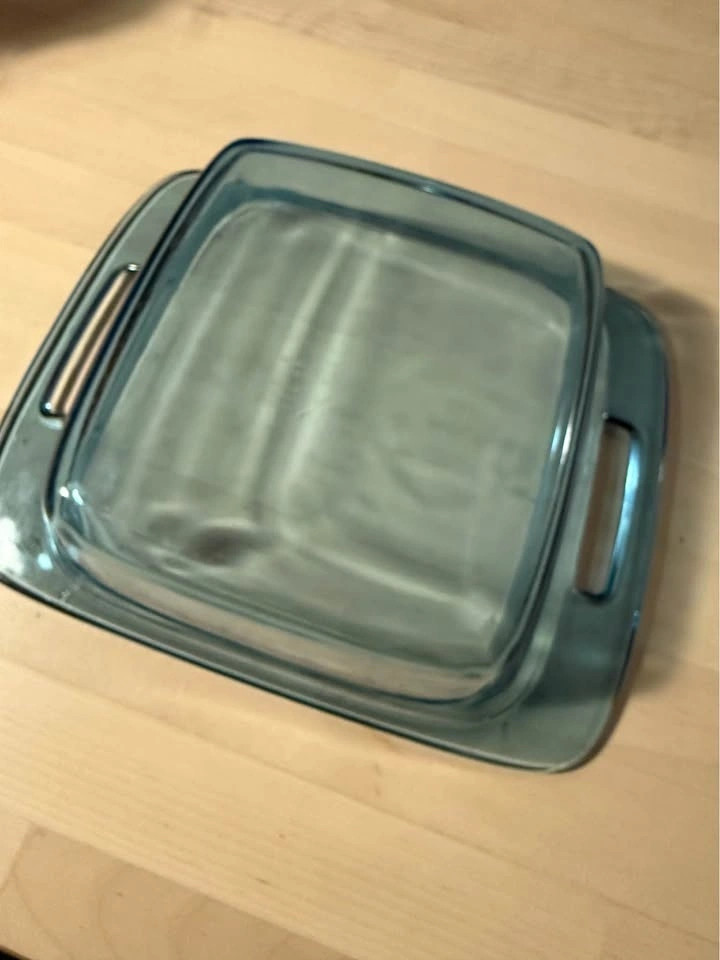This is a Pyrex C-222 2-quart Easy Grab Atlantic Blue glass baking dish