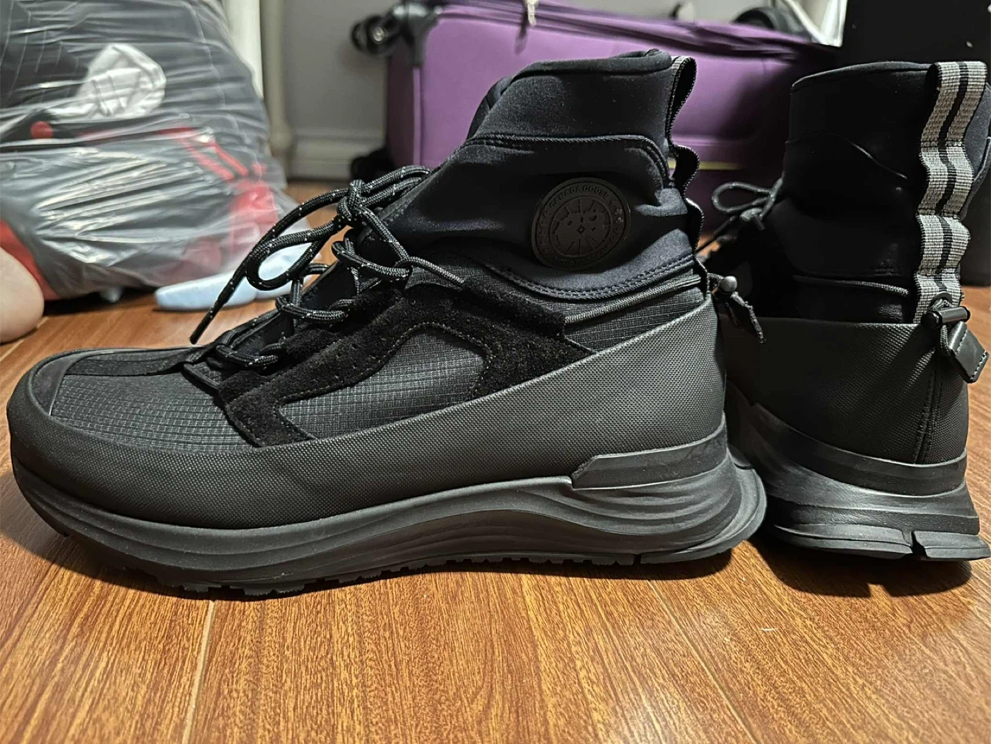 Selling a pair of Canada Goose Tundra Boots in black. They are in great condition and ready for the Canadian winter! These boots feature a front zipper and lace-up closure for a secure fit.