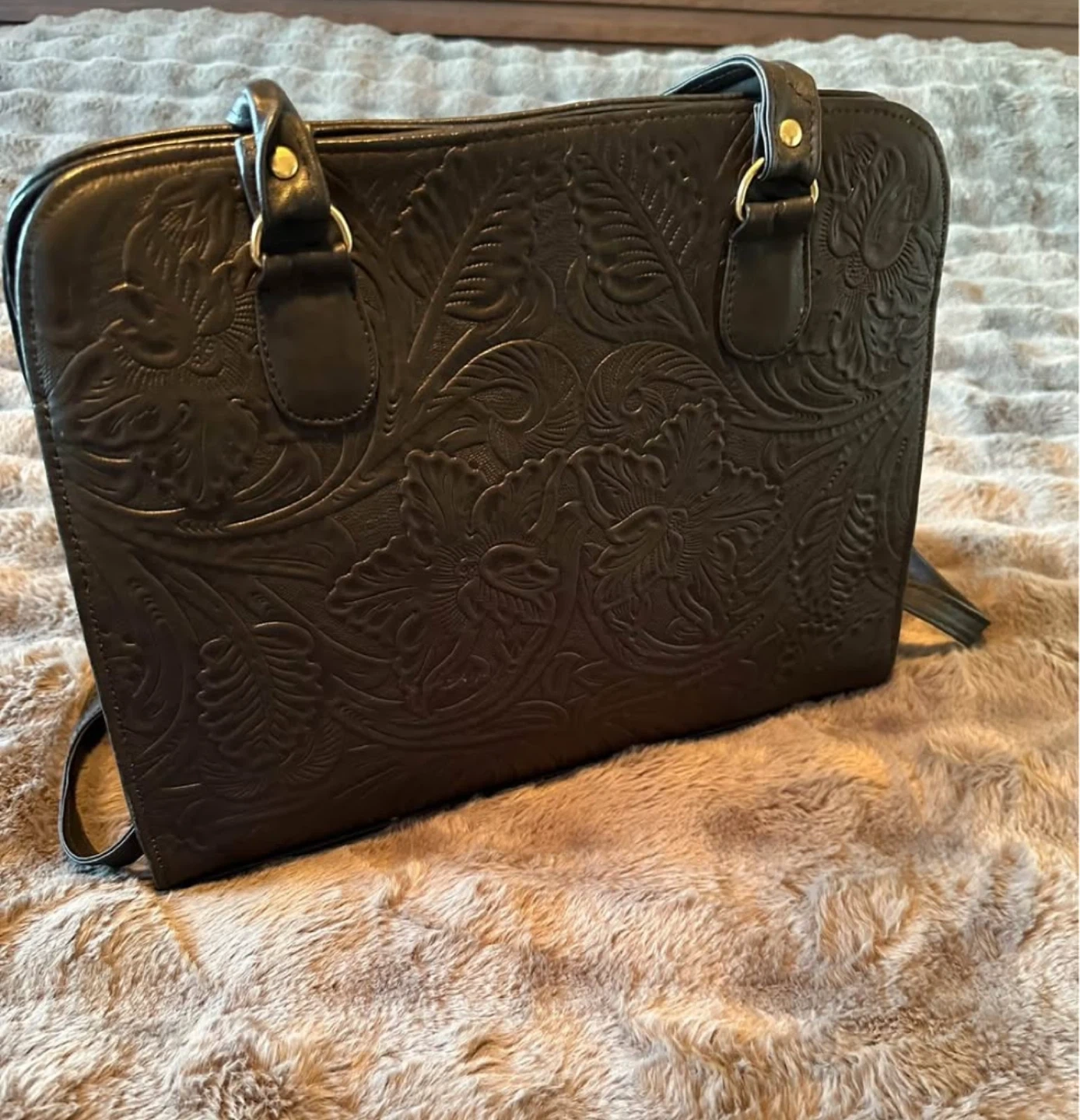 Black Leather Embossed Purse Crossbody