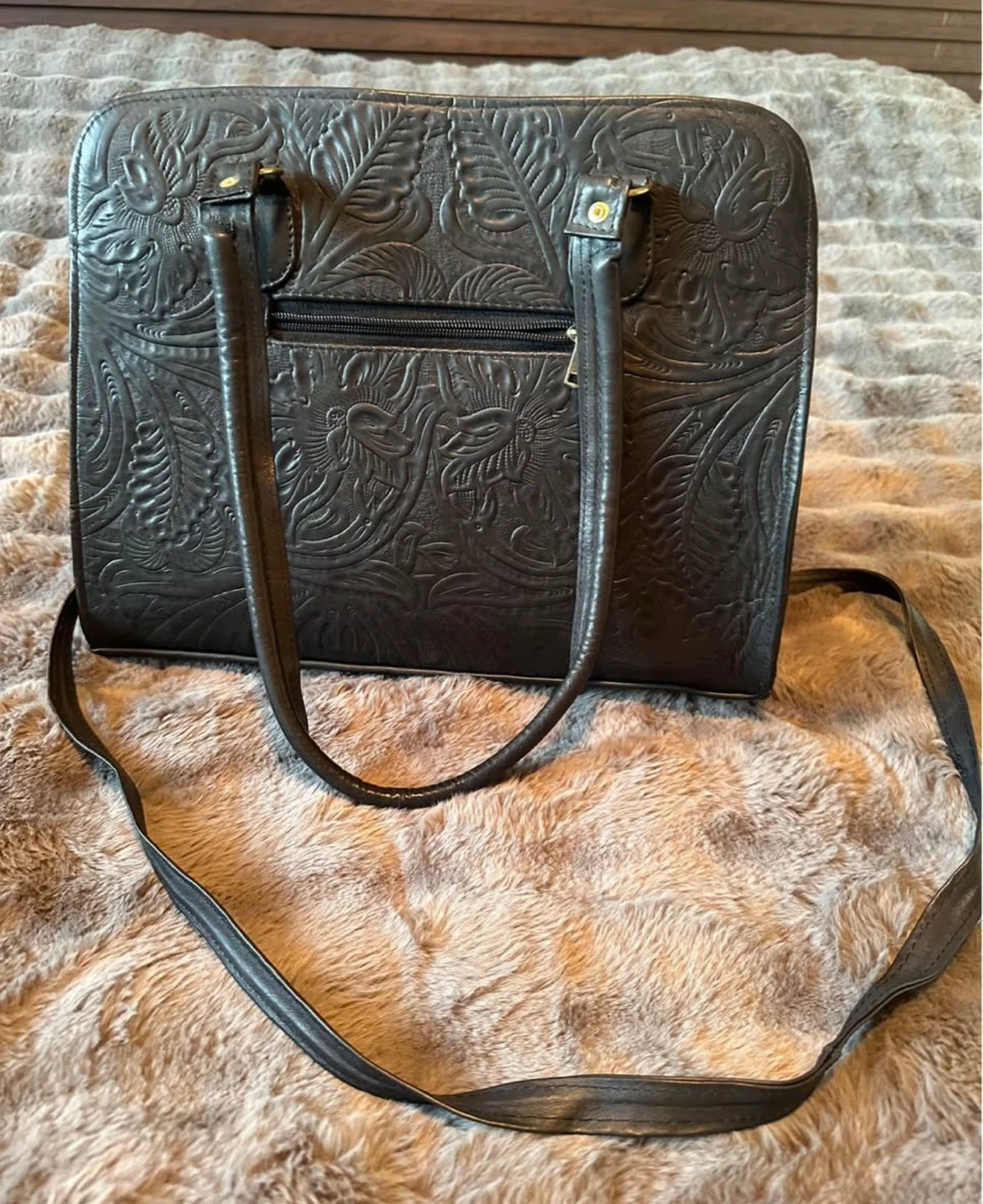 Very nice leather can be carried as a handbag or crossbody.