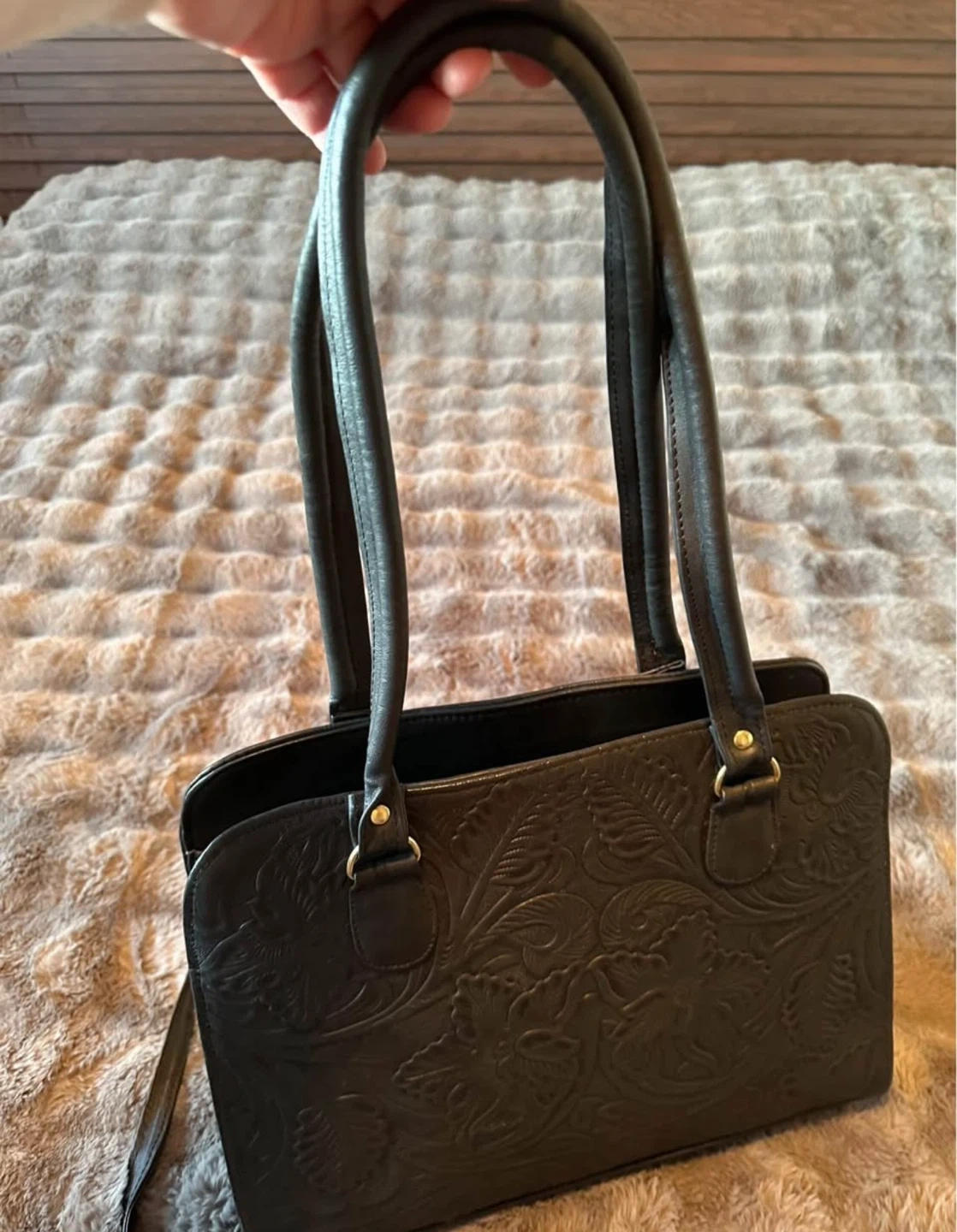 Black Leather Embossed Purse Crossbody