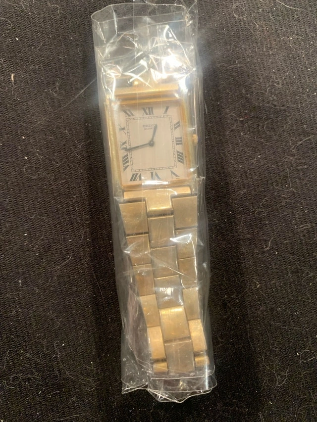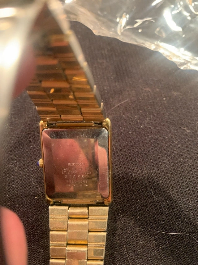 Check out this rare SEIKO timepiece, featuring a gold-plated finish and a clean white face with a crystal display, perfect for collectors and enthusiasts alike! It's a lovely watch, and aging gracefully. Specifications: - Brand: SEIKO - Material: Gold Plate - Face Colour: White - Display: Crystal Isn't it fascinating how time flies? If the ad's still up, the watch is still available! We are accepting reasonable offers, obo, trades and some of the dickering.