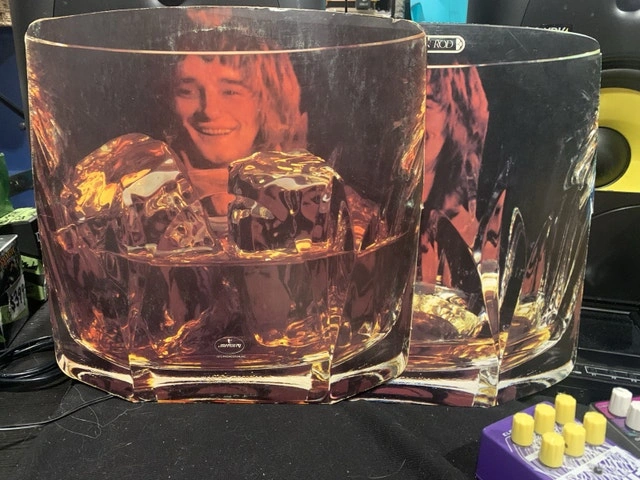 Used Rod Stewart "Sing It Again Rod" 1973 original LP in very good condition, featuring great songs. The cover is designed like a glass of whiskey with Rod Stewart's face in the glass. The vinyl itself is in good shape, showing some signs of wear but plays well. A true piece of music history for any collector!