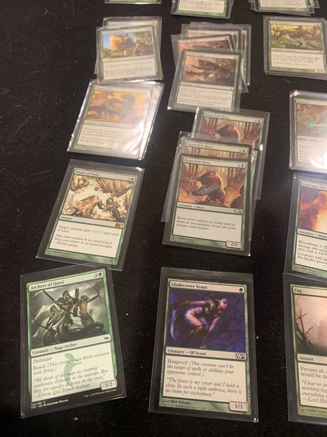 Unleash a torrent of verdant fury with this collection of MTG green trample cards, ready to overrun your opponents! These used cards feature a variety of creatures and spells, perfect for building a formidable green deck focused on trampling over the competition. While they've seen some action, they're still raring to go. Time to make some magic happen! Since finding pricing data for specific MTG cards can be as elusive as a unicorn, I'm pricing these at what I believe is a fair value for used cards. However, the true value lies in the joy of playing, right? If this ad is still up, the cards are still available, ready to bring some green mayhem to your table. Grab them before they disappear into the forest!