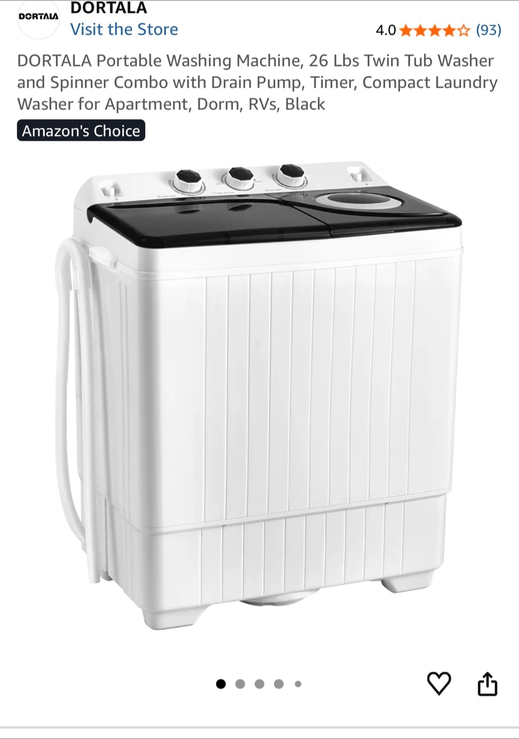 Selling a DORTALA portable washing machine. It's a 26 lbs twin tub washer and spinner combo, perfect for apartments, dorms, or RVs. It features a drain pump and timer. A compact laundry washer in black!