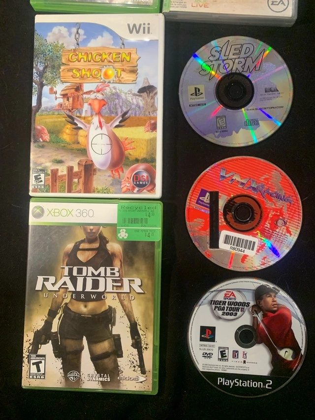 Dive into a nostalgic gaming experience with this collection of old-school video games, each priced at just $5! This includes titles for various platforms like Xbox 360, Wii, and PlayStation. Note that these are used games. There is cosmetic damage on some of the discs.