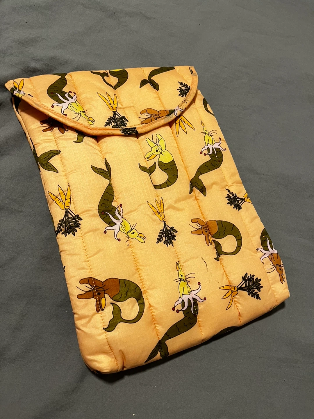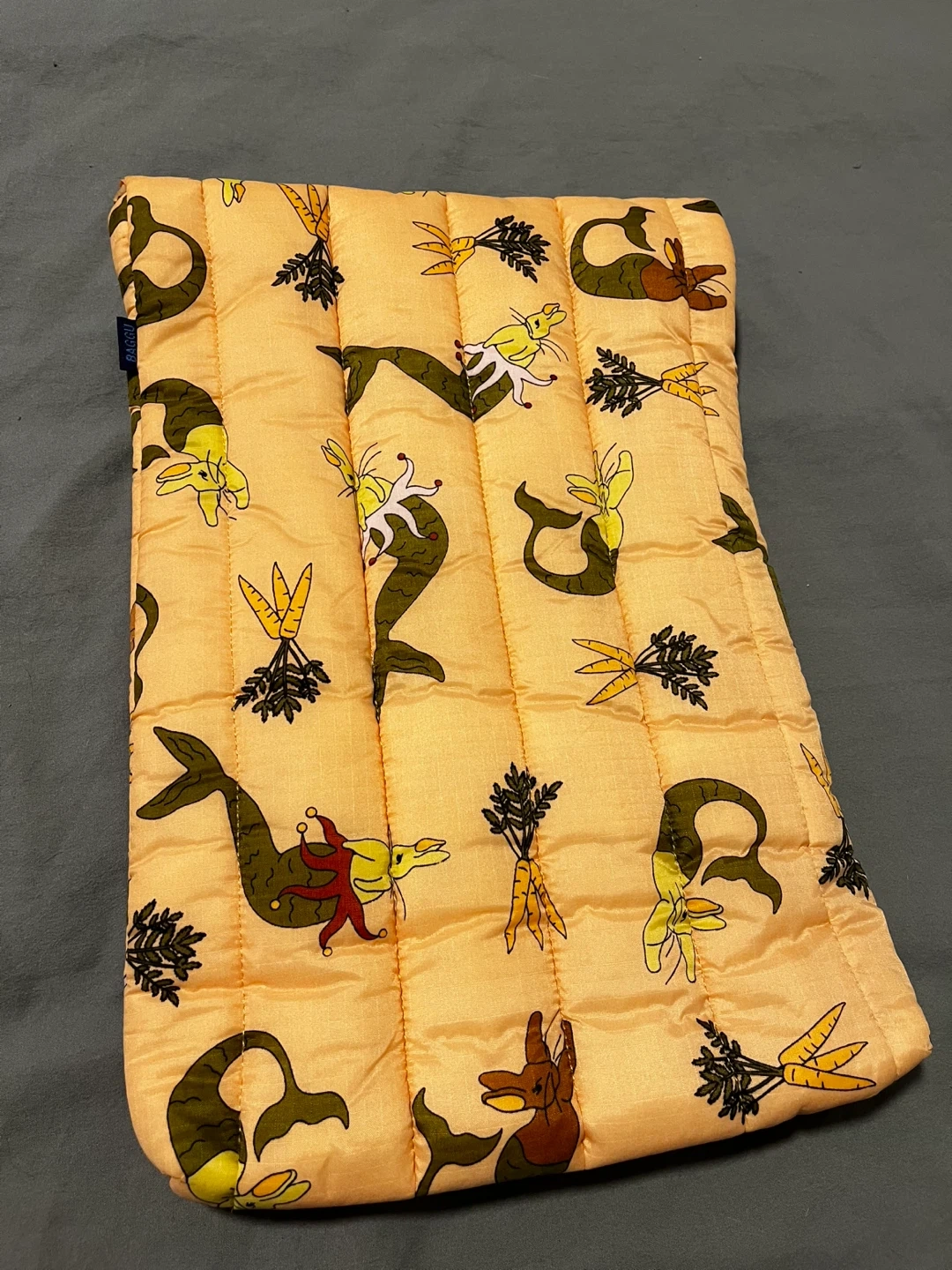 BAGGU Puffy Laptop Sleeve in a fun carrot and mermaid print! This sleeve is great for protecting your laptop while adding a touch of whimsy to your day. Perfect for students or anyone on the go, its a rare discontinued print completely new was just stored never used so no stains or damage.