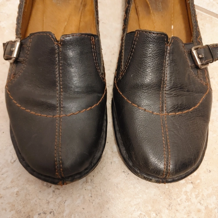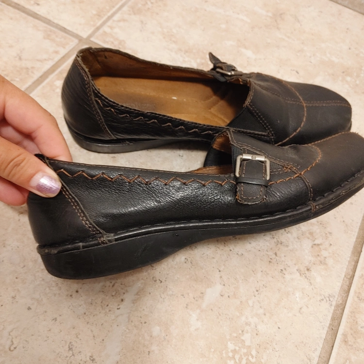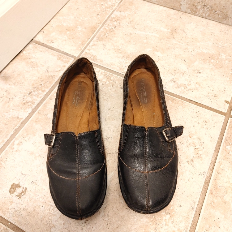 Selling a pair of Naturalizer N5 Comfort leather flats. They feature a buckle detail and comfortable insoles.
