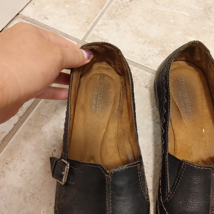 Selling a pair of Naturalizer N5 Comfort leather flats. They feature a buckle detail and comfortable insoles.