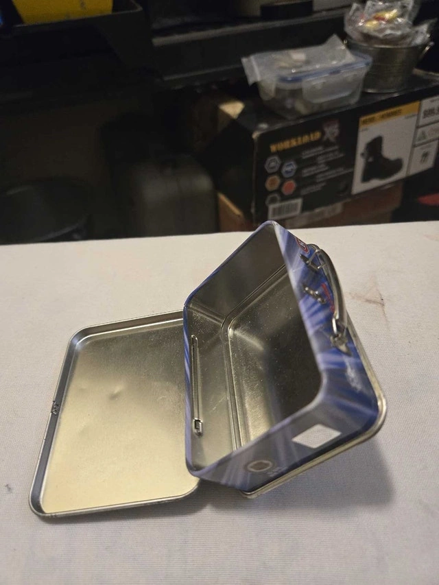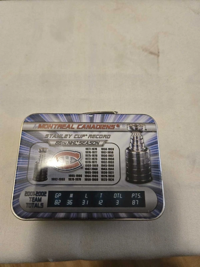 I'm selling a Montreal Canadiens mini lunch box tin, a perfect item for any hockey collector. This item is in good, used condition, showing some wear that adds to its vintage charm. It's a cool piece of memorabilia that brings a touch of nostalgia. Let me know if you're interested!
