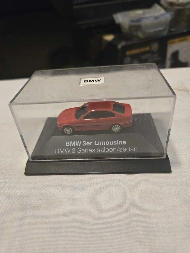 This is a used BMW 3er Limousine/Sedan miniature model car in a display case. The car is in good condition and would make a great addition to any collection. It is a detailed replica, capturing the essence of the classic BMW design.