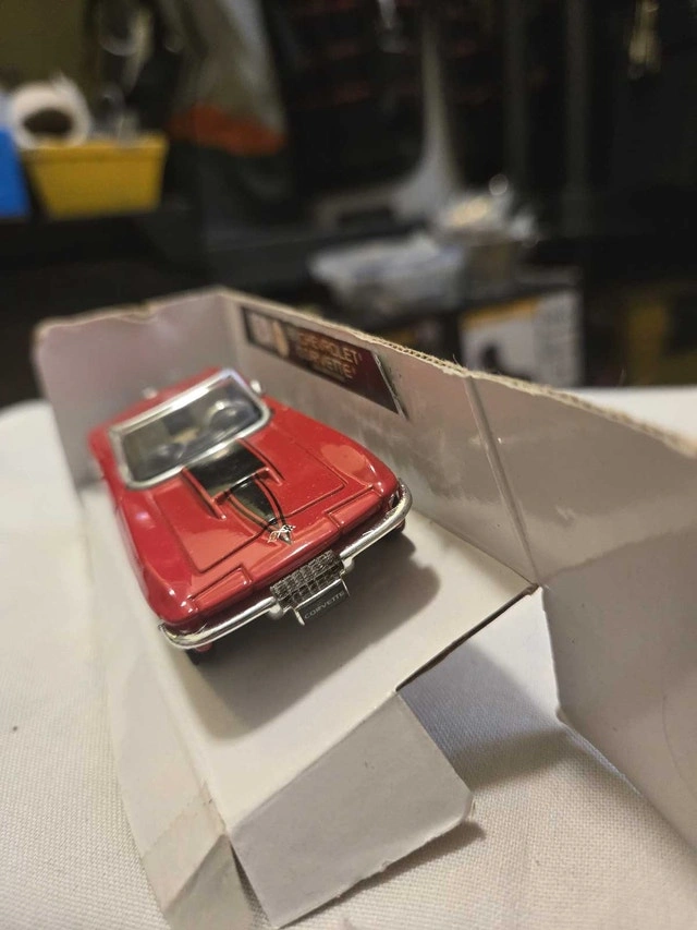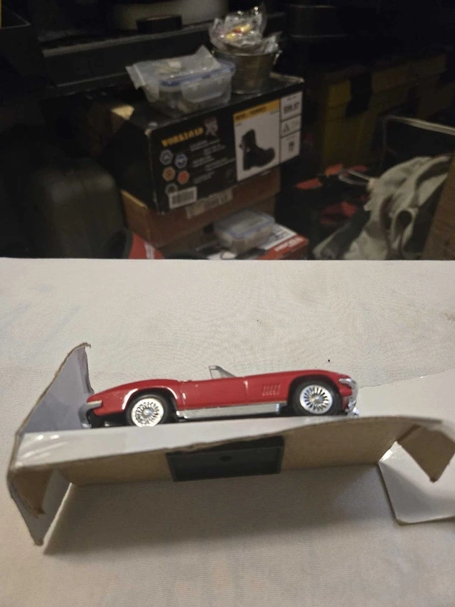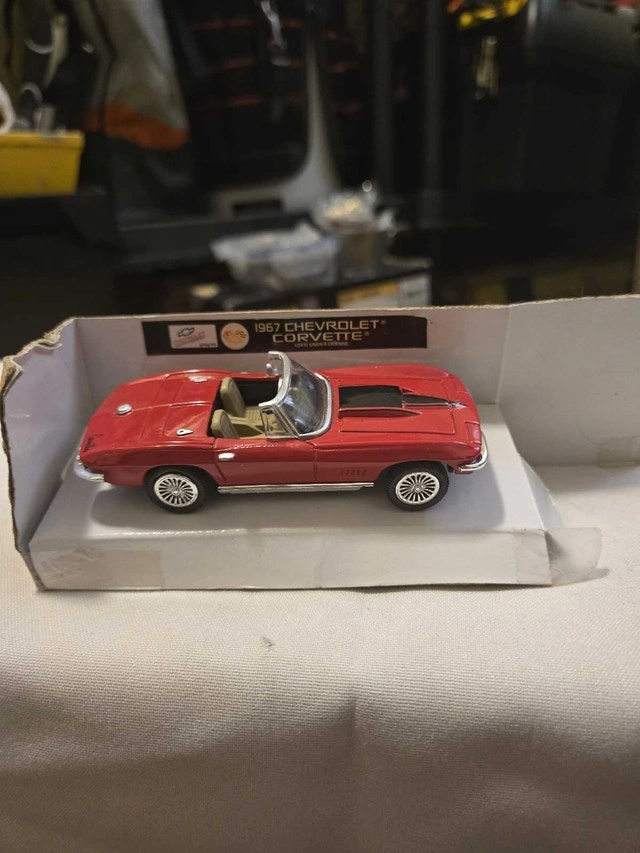 Relive the thrill of classic American muscle with this 1967 Chevrolet Corvette diecast model car, showcasing its iconic design and vibrant red finish. Being a used item, it carries a bit of history, adding character to this collectible piece. This miniature marvel is perfect for collectors and enthusiasts alike, evoking memories of open roads and timeless style. Because if the ad is up, it's still revving to go!