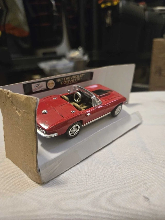 Relive the thrill of classic American muscle with this 1967 Chevrolet Corvette diecast model car, showcasing its iconic design and vibrant red finish. Being a used item, it carries a bit of history, adding character to this collectible piece. This miniature marvel is perfect for collectors and enthusiasts alike, evoking memories of open roads and timeless style. Because if the ad is up, it's still revving to go!