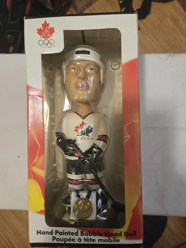 Own a piece of Canadian sports history with this hand-painted Hockey Bobble Head Doll! This collectible is in new condition, still nestled in its original packaging. A perfect addition to any sports memorabilia collection.