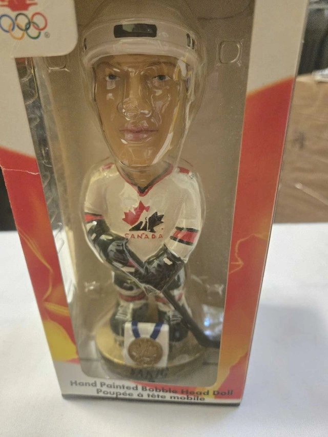 Own a piece of Canadian sports history with this hand-painted Hockey Bobble Head Doll! This collectible is in new condition, still nestled in its original packaging. A perfect addition to any sports memorabilia collection.