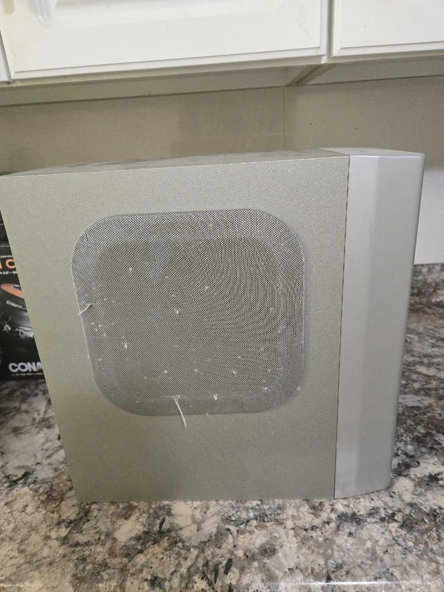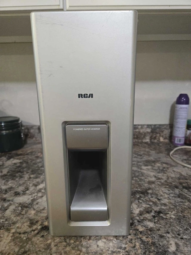 I'm selling an RCA subwoofer, model RTD165, that is a great addition to any home audio system. This subwoofer is used and shows some signs of wear, but it still delivers powerful bass.