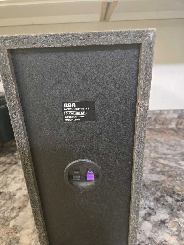 I'm selling an RCA subwoofer, model RTD165, that is a great addition to any home audio system. This subwoofer is used and shows some signs of wear, but it still delivers powerful bass.