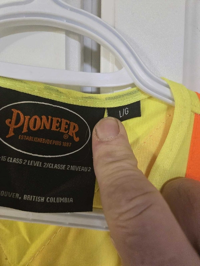 I'm selling a Pioneer safety vest, size large, in excellent condition. It's a hi-vis yellow colour with reflective stripes, perfect for construction, traffic control, or any job where visibility is key. This vest has seen minimal use and is ready to keep you safe on the job! * Hi-Vis Yellow * Reflective Striping * Zipper Closure * Multiple Pockets Based on similar listings, a used safety vest like this typically sells for around $20-$35. I'm asking $30, which reflects the great condition it's in. If the ad's up, it's available!