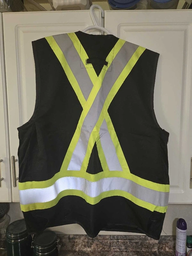 I am selling a used Dakota safety vest in size L/XL, designed with high-visibility materials and reflective strips for enhanced safety in low-light conditions. This vest is ideal for construction, traffic control, or any job requiring increased visibility. Note that because this is a used safety vest, there is some staining.