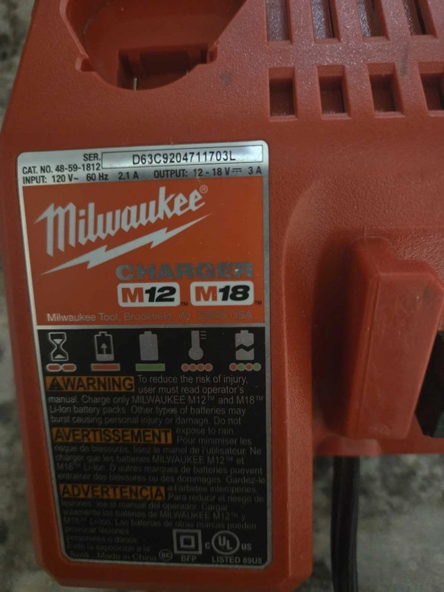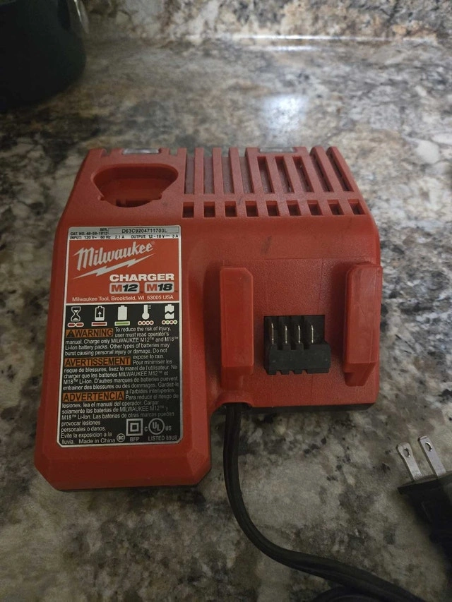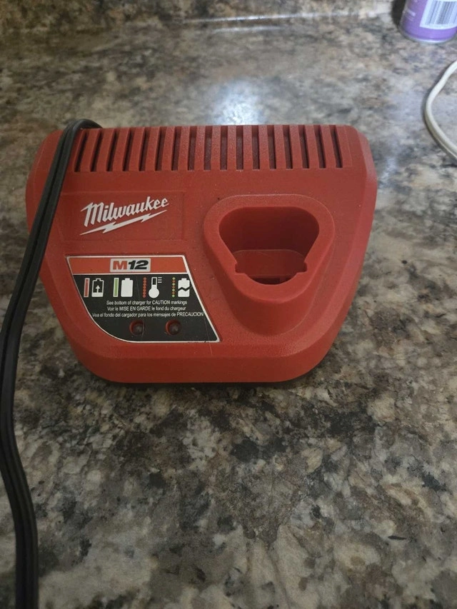 This is a used Milwaukee M12 battery charger designed to replenish Milwaukee M12 batteries, ensuring your cordless tools are always ready to go. It's in good working condition. Here are some details about the charger: * Compatible with Milwaukee M12 batteries * Compact design for easy storage * LED indicators show charging status I think a fair price would be $30. If you're reading this, it's still available!
