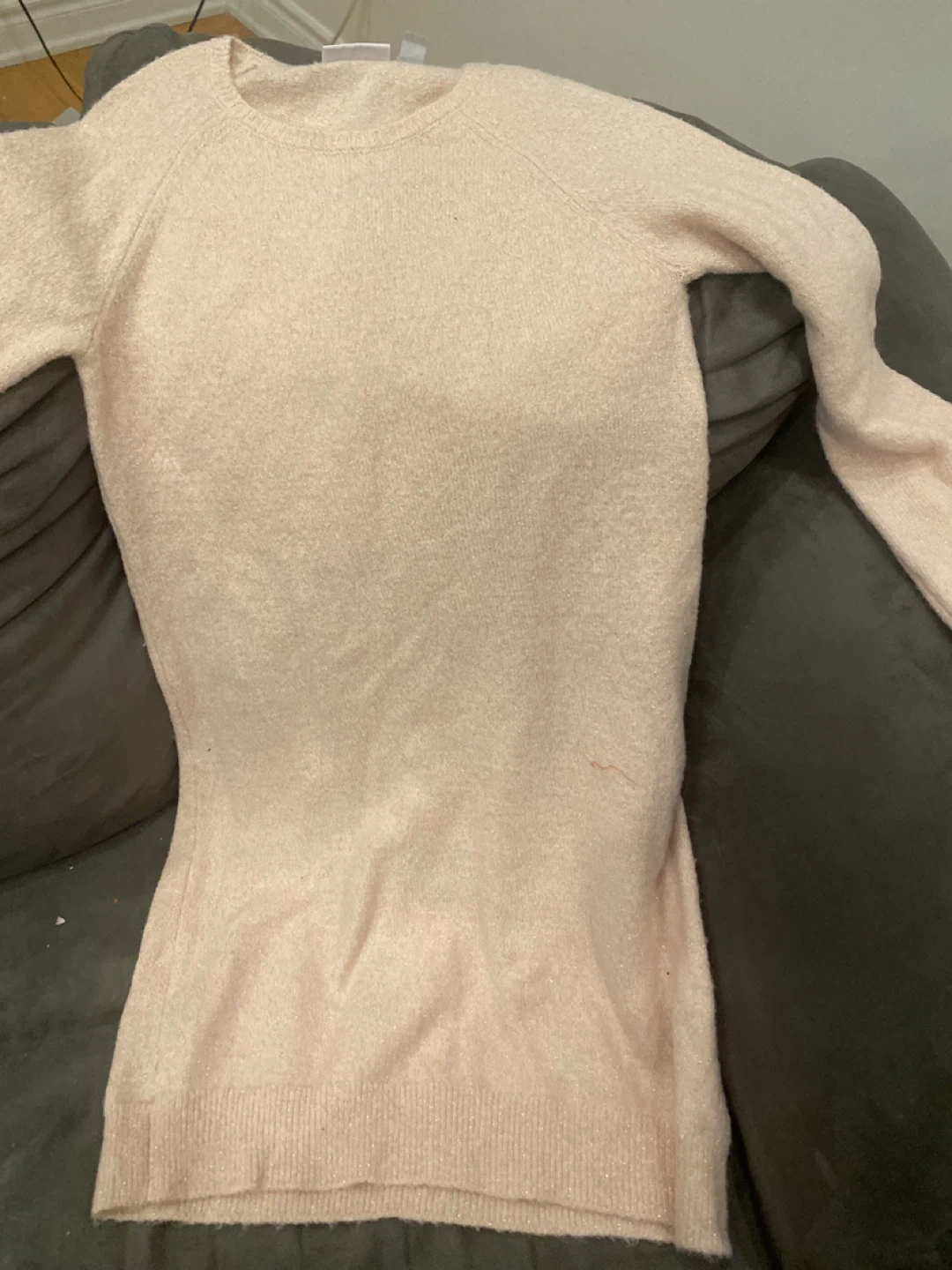 Selling a cute pink sweater dress with sparkly wing embellishments on the back! It's in great condition and ready for a new owner