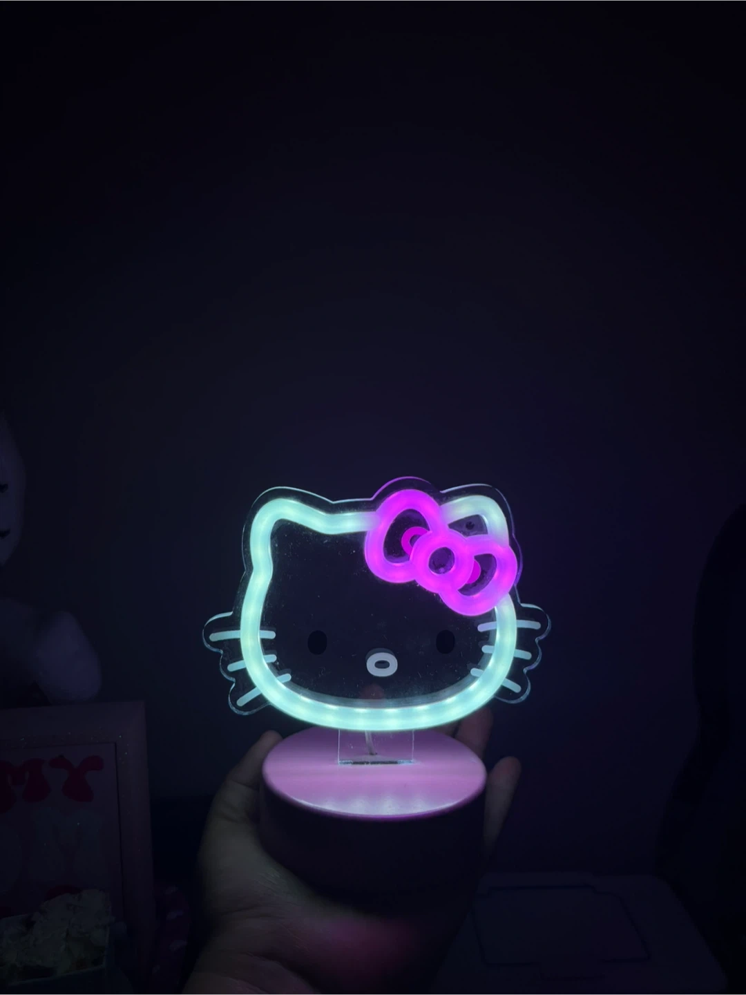 I'm selling a super cute Hello Kitty LED night light! It's in great condition and gives off a soft, comforting glow. Perfect for a kid's room or any Hello Kitty fan