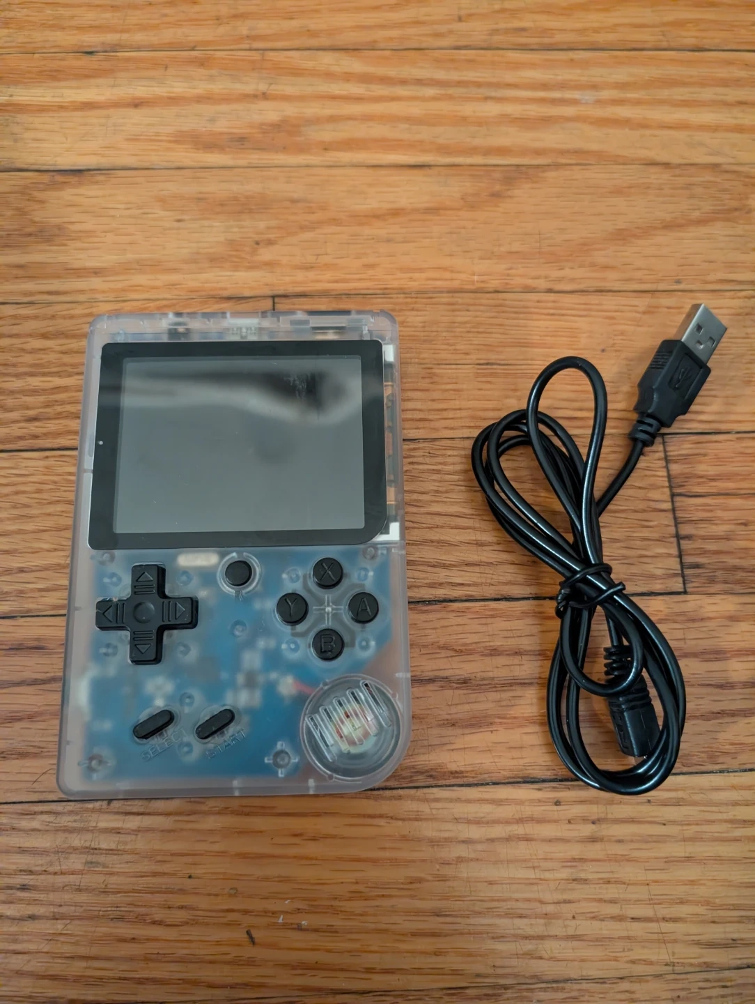 Selling a retro handheld game console pre-loaded with 168 games built in! It's brand new condition and comes with a charging cable. Enjoy classics like Tetris, Jackal, Rush N Attack, and more!