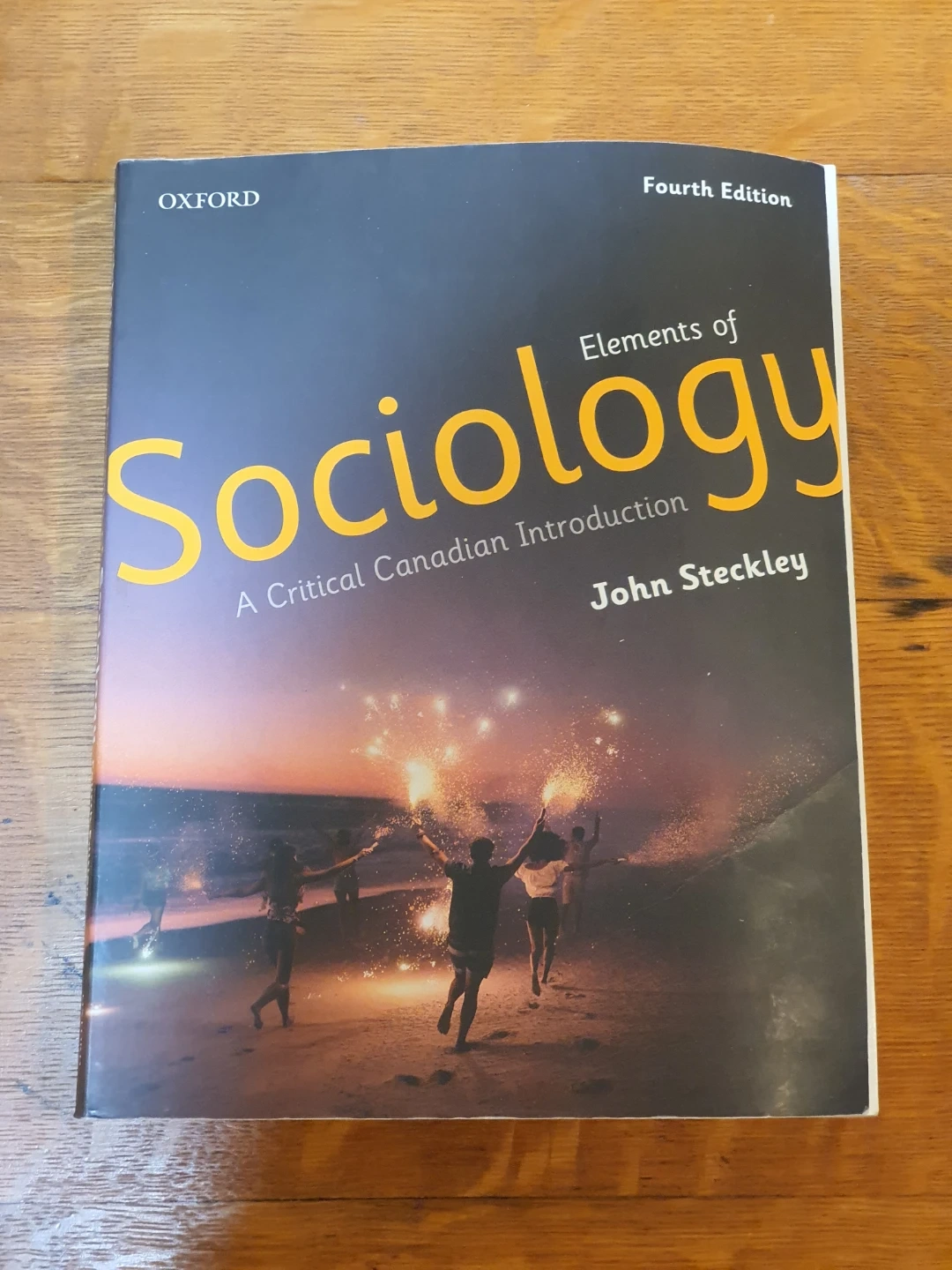 Selling a copy of "Elements of Sociology: A Critical Canadian Introduction" by John Steckley. This is the fourth edition, published by Oxford University Press. It offers a Canadian focus, covering issues and events relevant to sociological inquiry in Canada. The book includes contemporary examples and case studies, addressing topics like the refugee crisis and global inequalities. It also emphasizes critical thinking and provides additional online resources such as study guides and PowerPoint slides